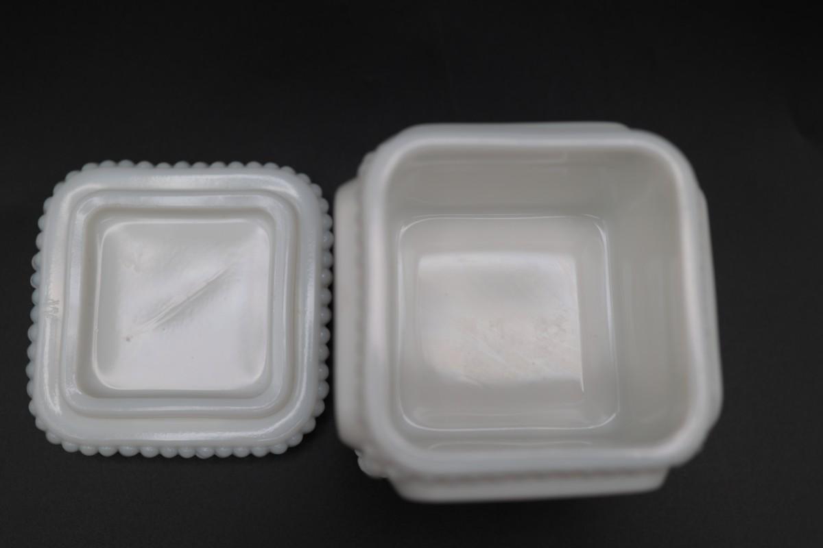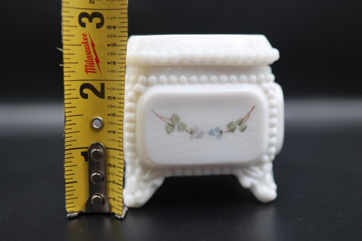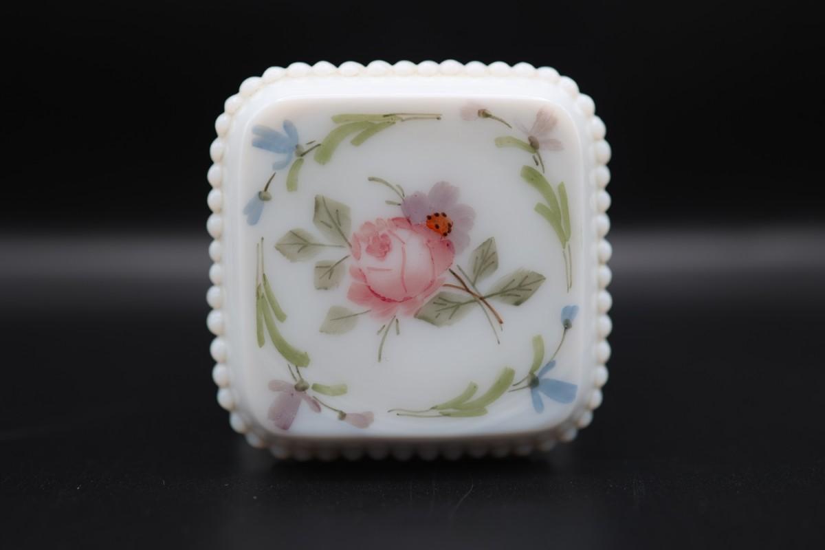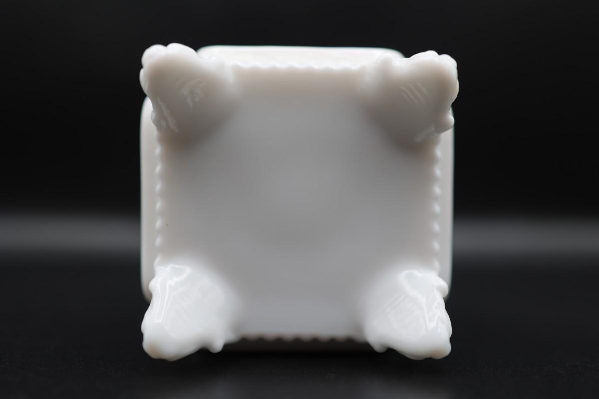 Vintage Westmoreland Milk Glass Trinket Box Square Footed with Roses