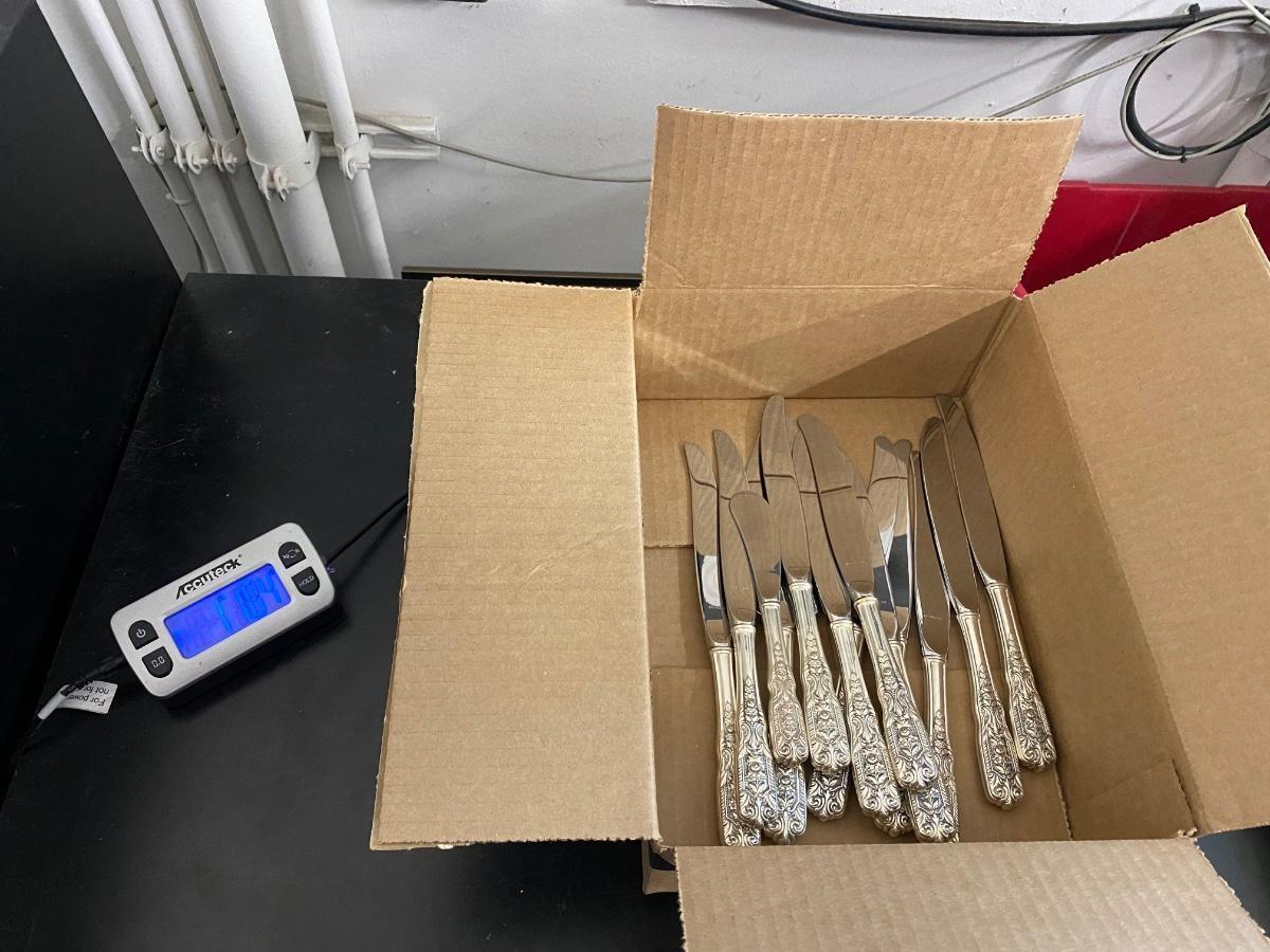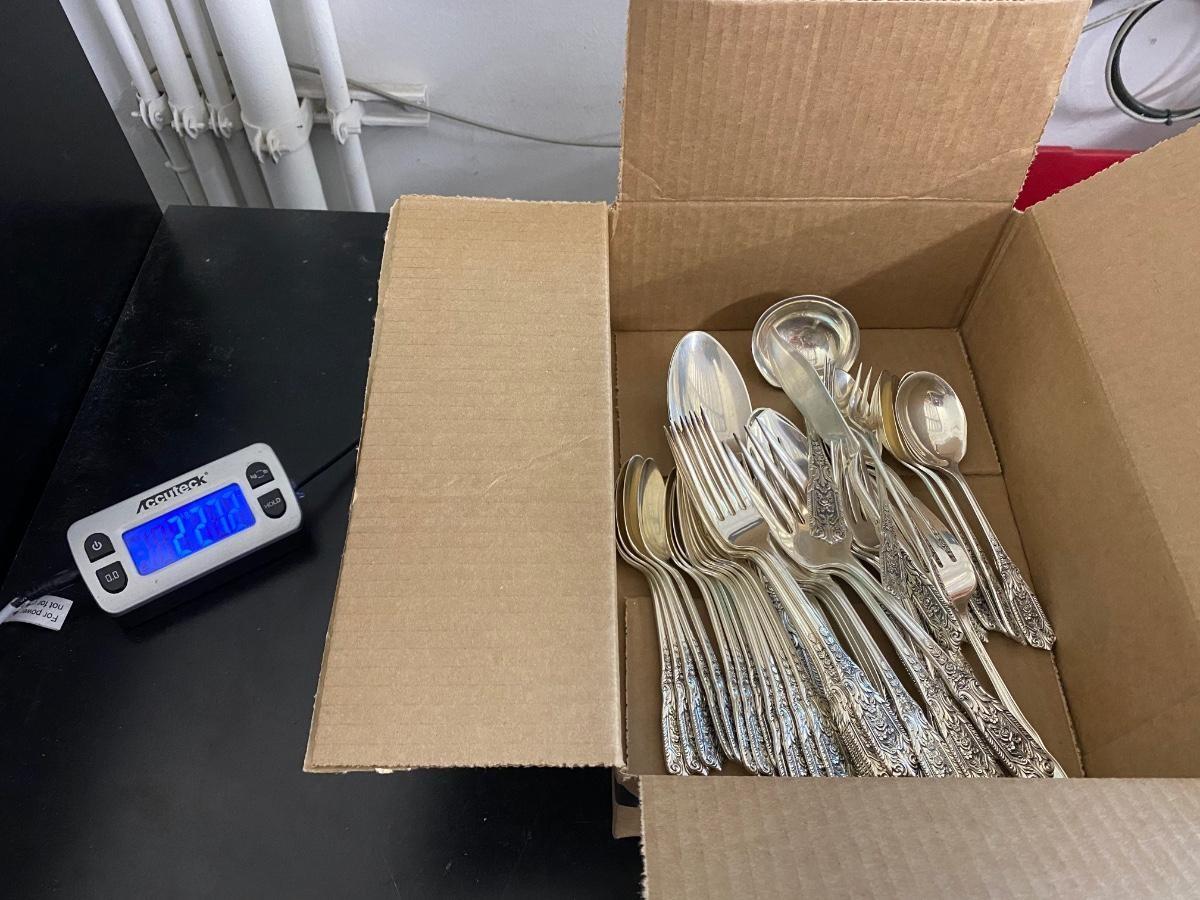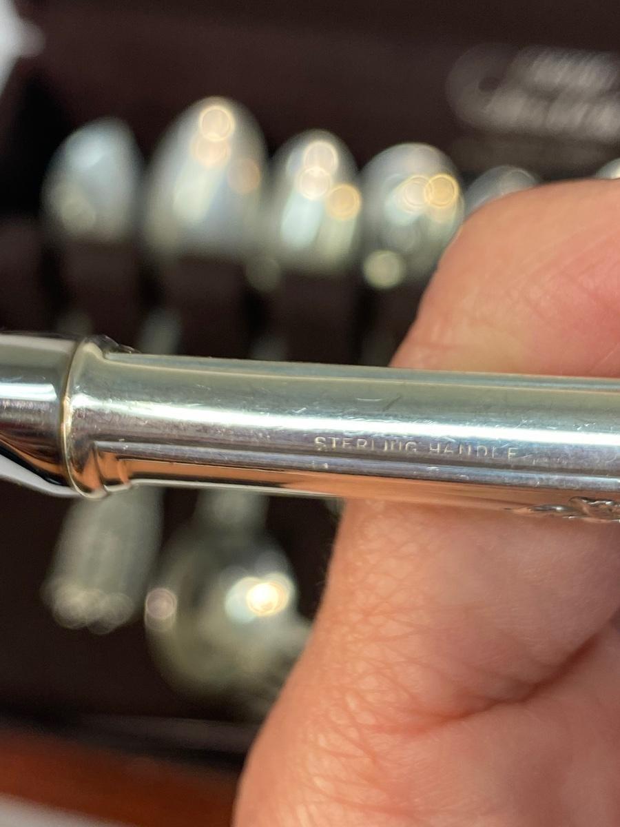 Vintage Westmorland Sterling Silver Flatware Set with Serving Pieces & Storage Box. Beautiful floral pattern - Milburn Rose. In very good condition. Hollow handled pieces weighed separate from solid sterling pieces. Not quite service for 12, missing a few pieces, handwritten list is accurate. Hollow handle 1184g t.w. and solid pieces 2272g t.w.. Similar set is currently for sale on Etsy for $3800.00