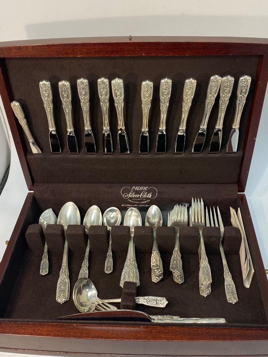 Vintage Westmorland Sterling Silver Flatware Set Milburn Rose with Serving Pieces & Storage Box