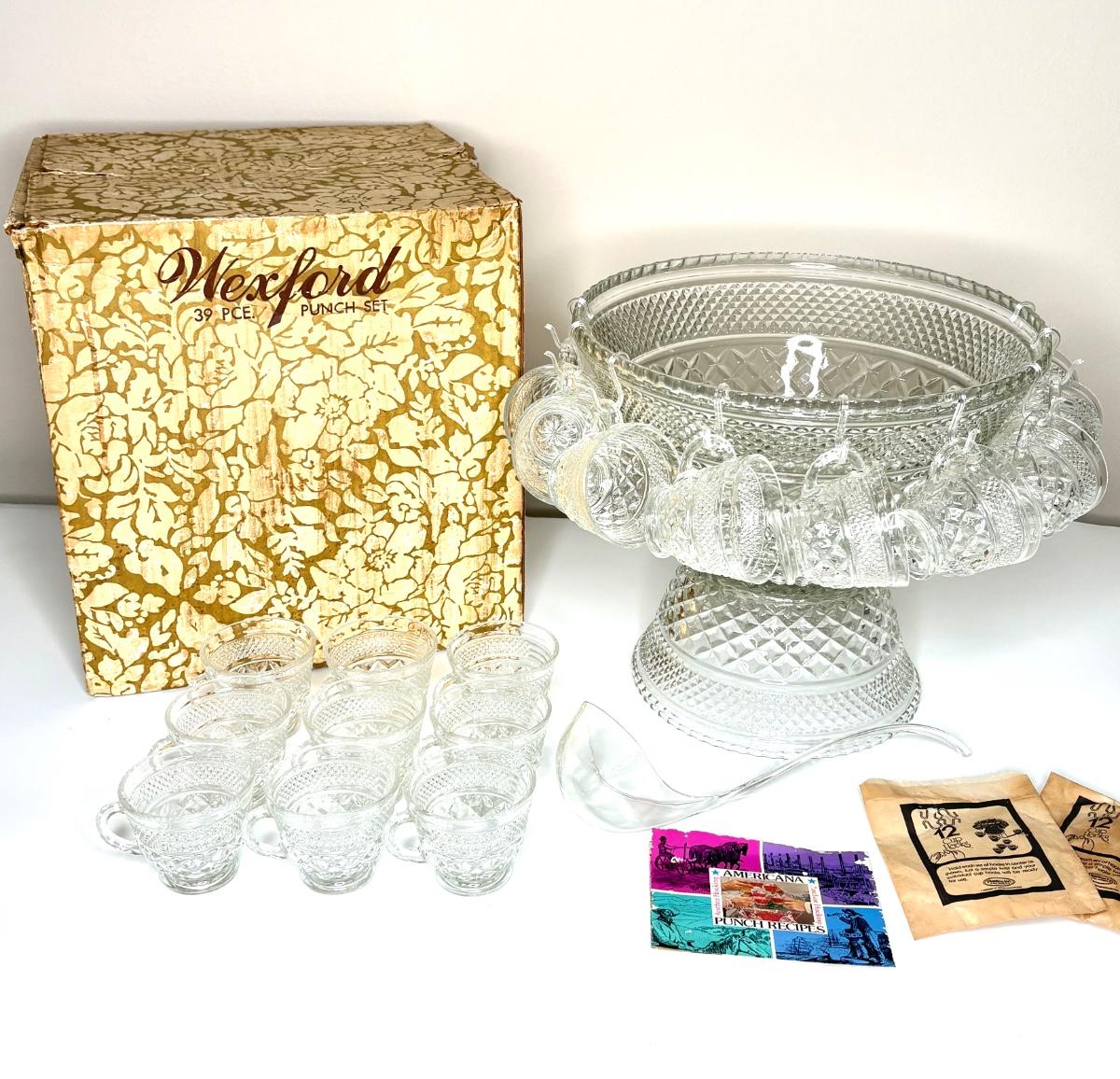 Vintage Wexford Punch Bowl Set with 18 Cups and Ladle