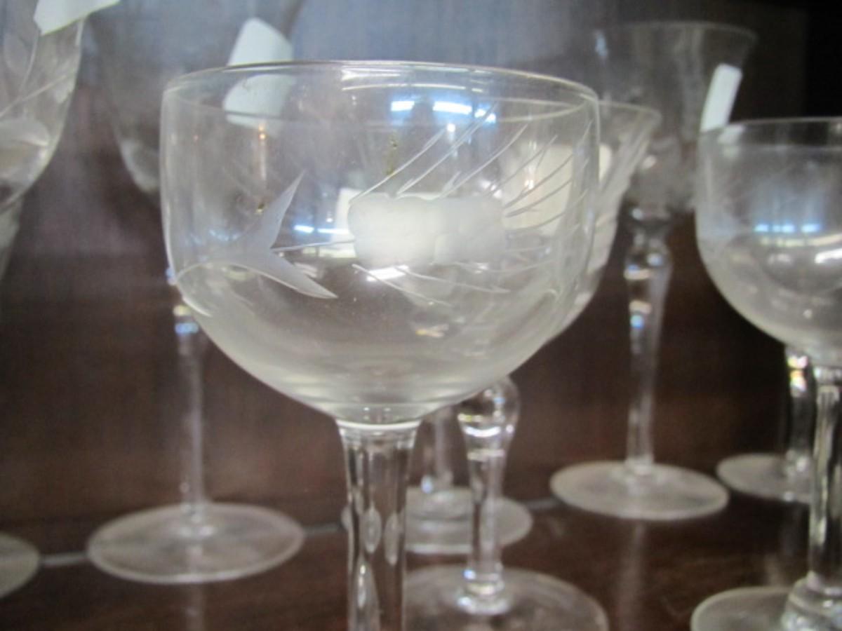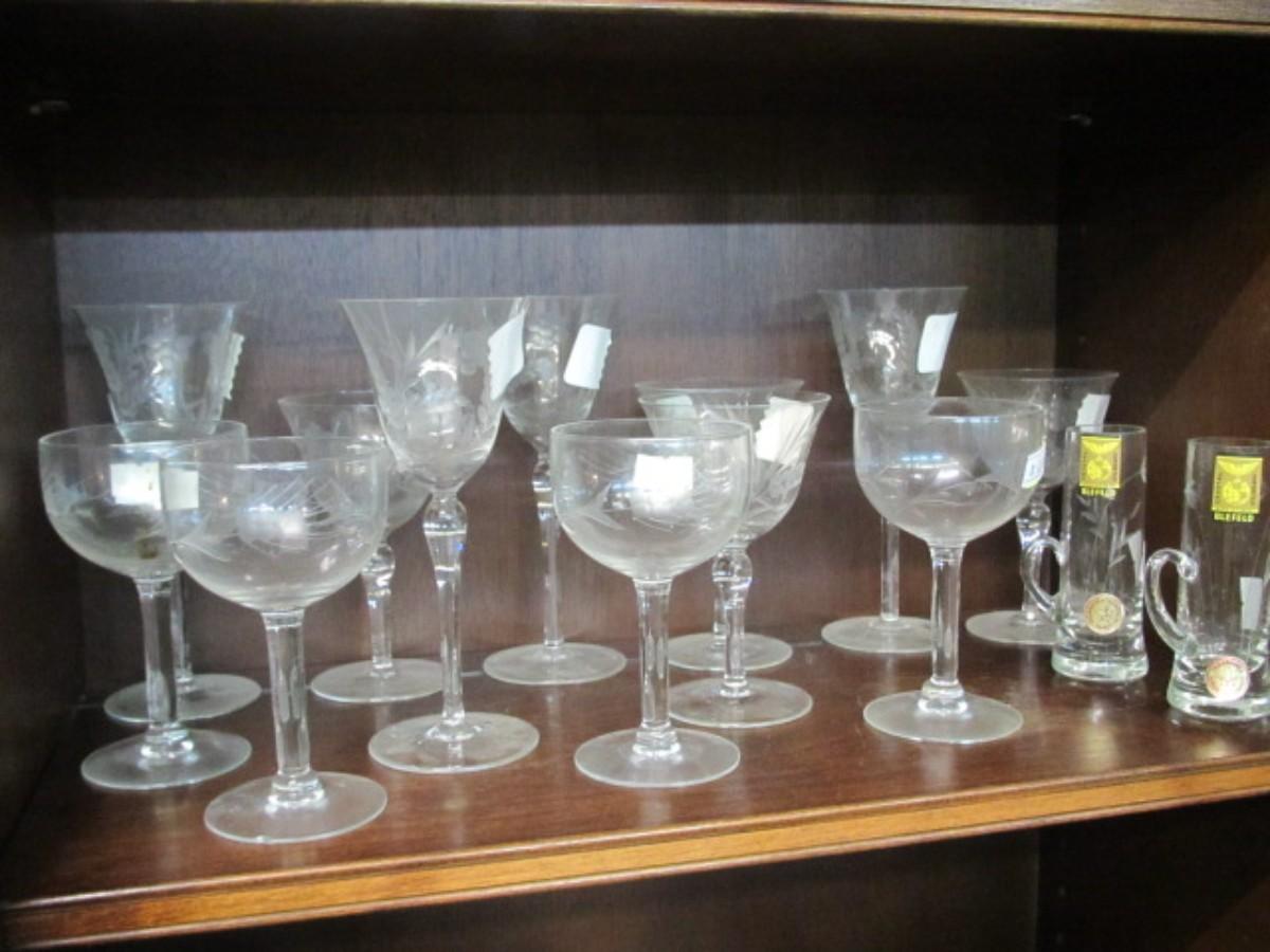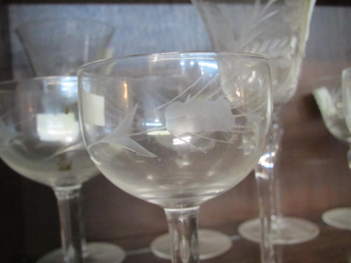 Vintage Wheat By Javit Wine Glasses Etched Crystal Stemware