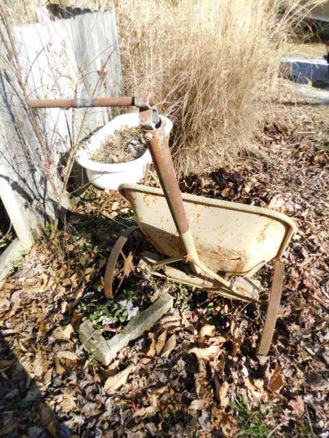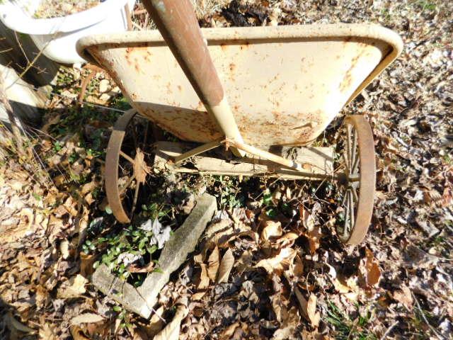Vintage Wheel Barrow  with Steel Wheels and Metal Bucket