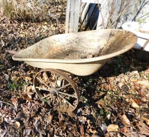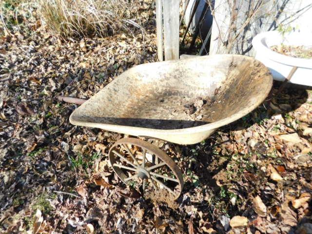 Vintage Wheel Barrow with Steel Wheels and Metal Bucket