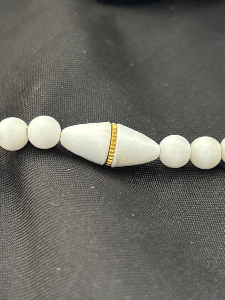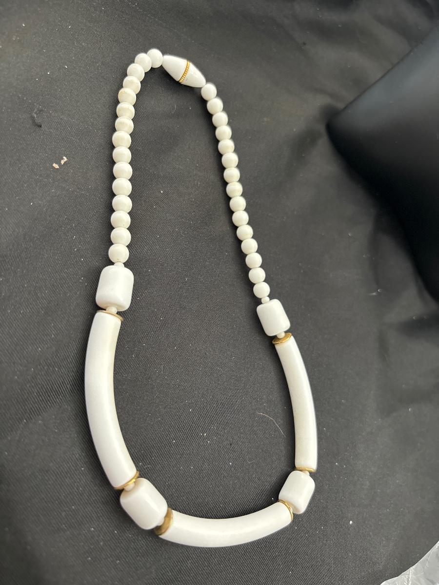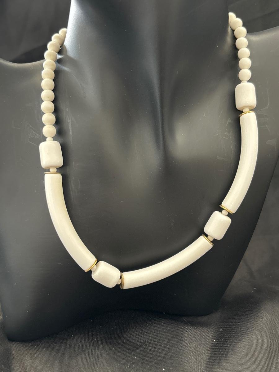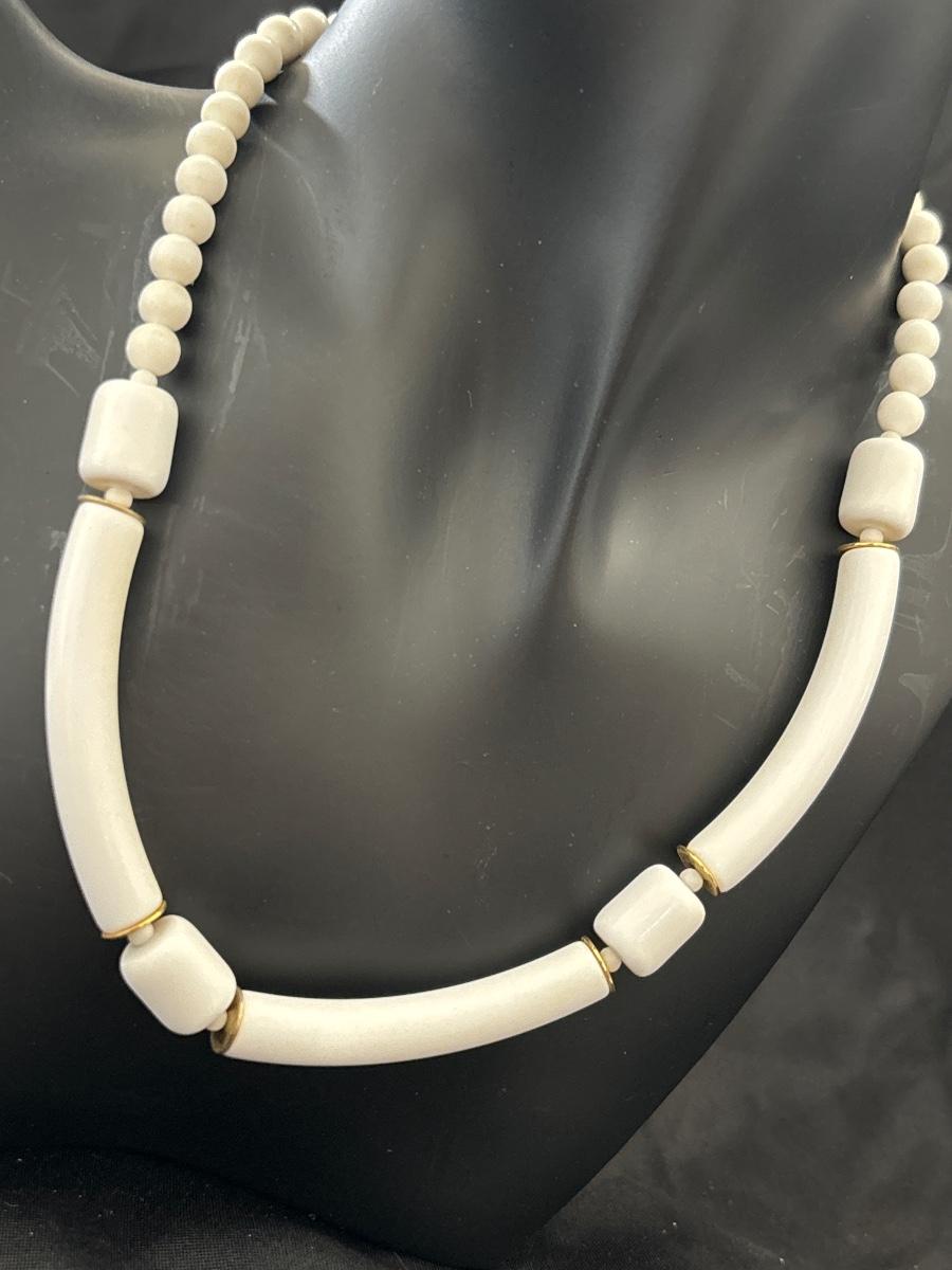 Vintage White Acrylic Tube Shaped & Round Beaded Retro Choker Necklace 16”