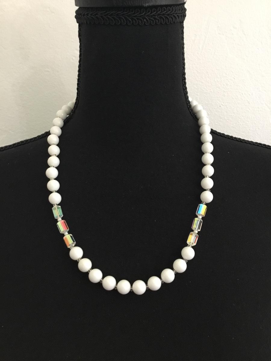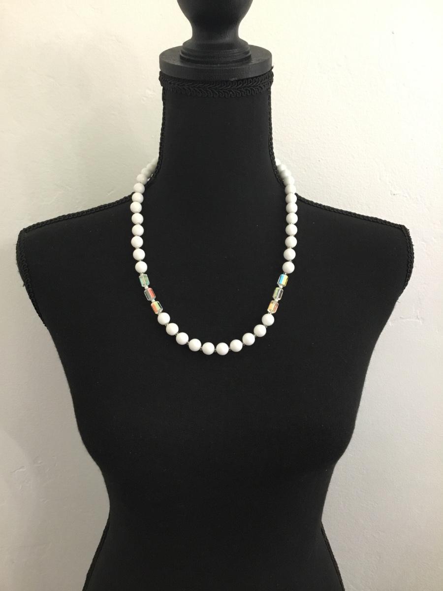 Vintage white bead with crystal bead necklace