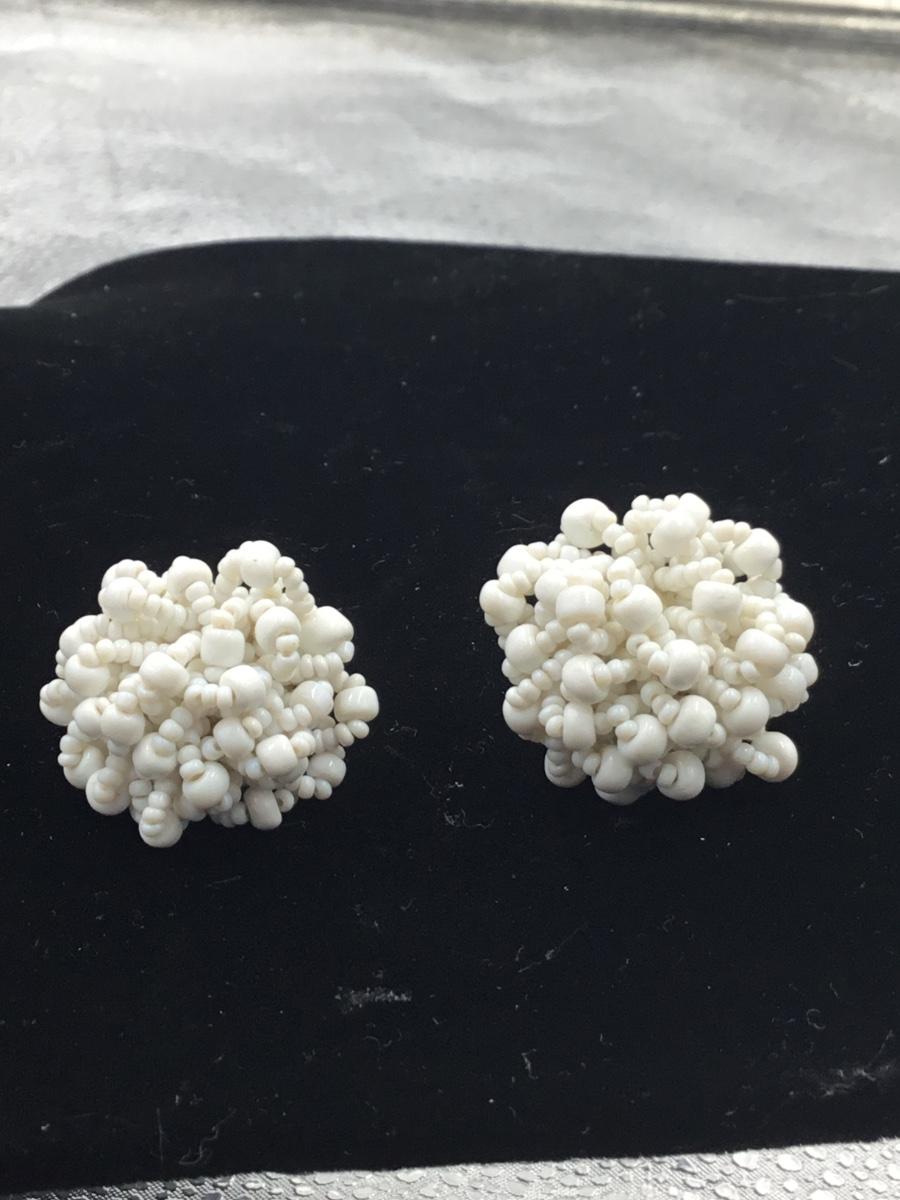 Vintage white beaded clip on earrings