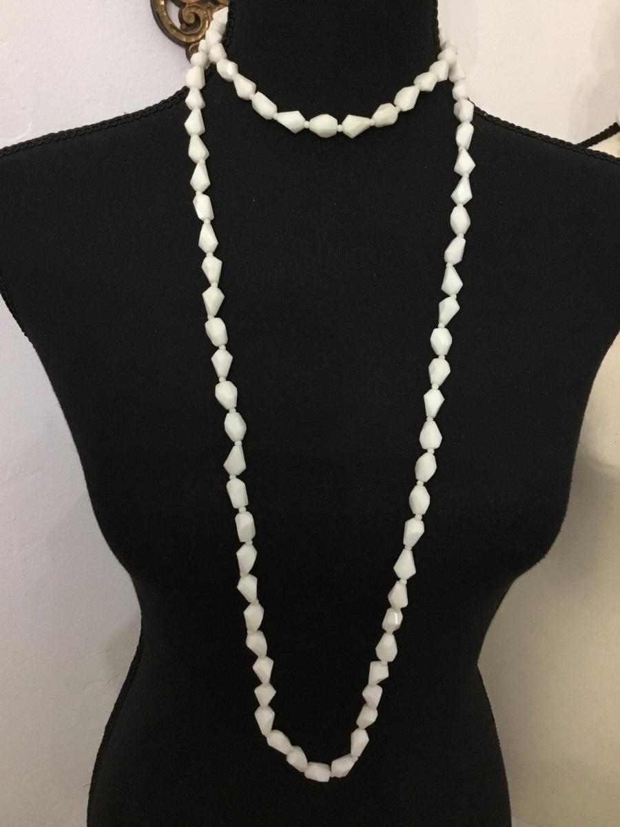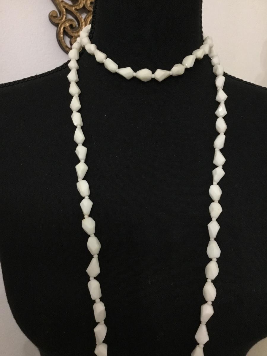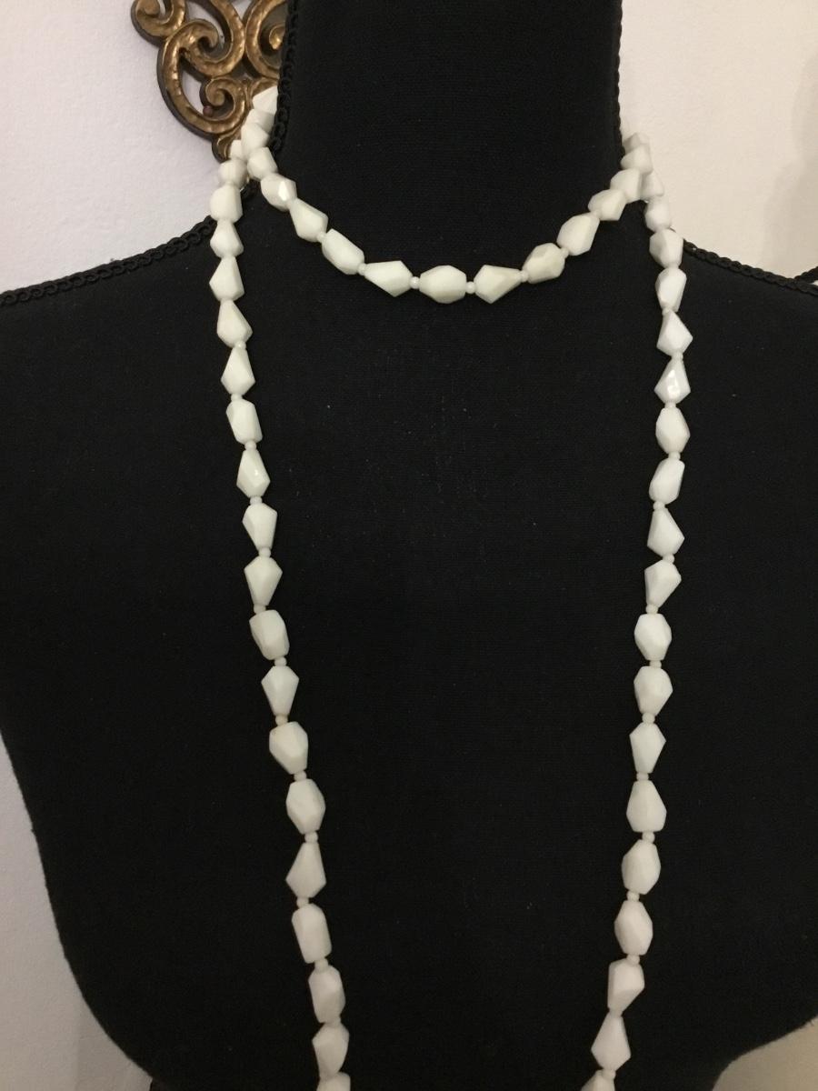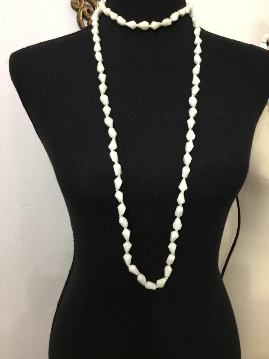 Vintage white beaded plastic flapper style necklace
