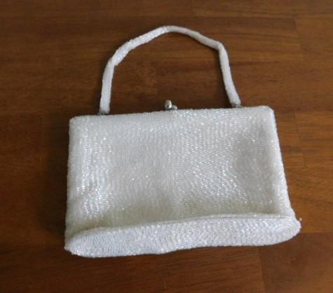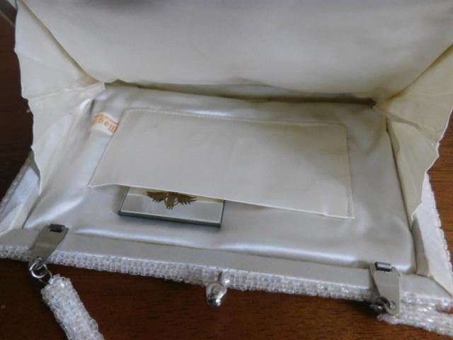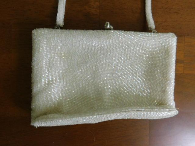 Vintage White Beaded Purse by Magid 7" has a loose seam as pictured