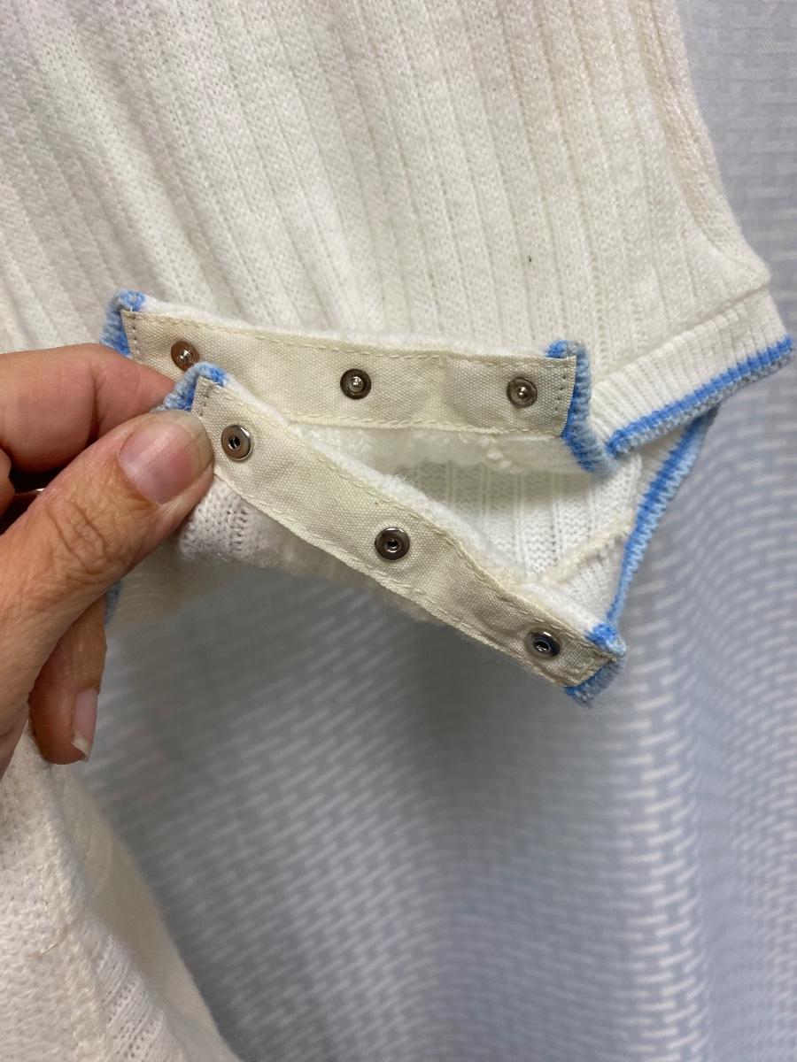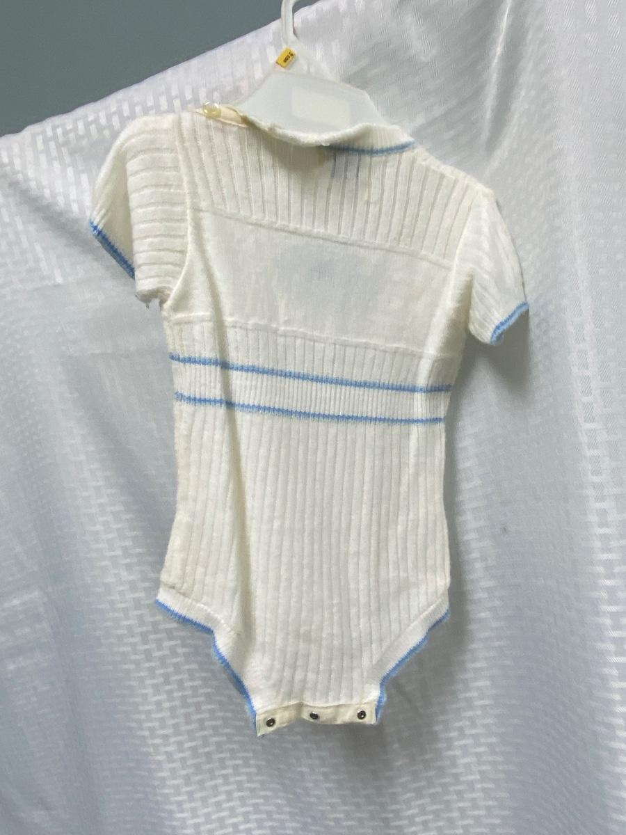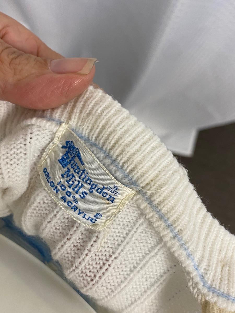 Vintage White & Blue Infant Sweater Set Elephant Onesie Cardigan Huntington Mills 9-12 month. In good vintage condition. No spots or holes and it doesn't look to have discolor either.