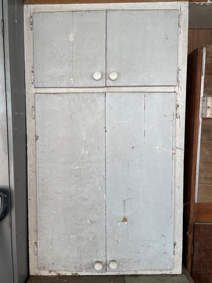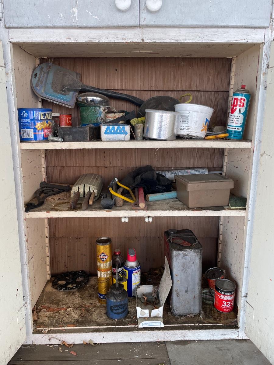 Vintage white cabinet with misc items inside
