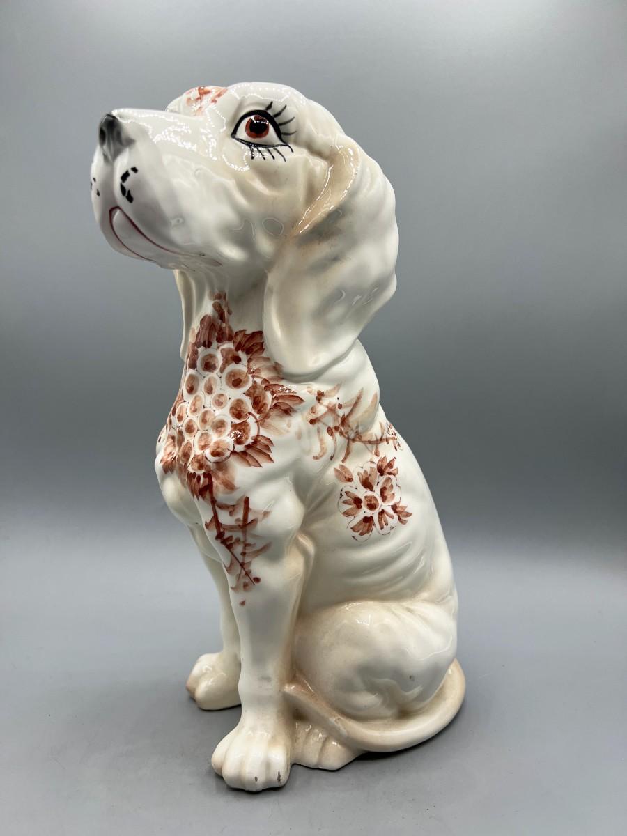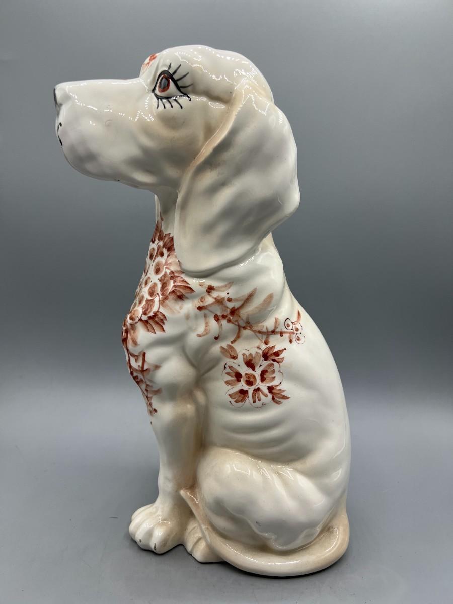 Vintage White Ceramic Art Decorative Sitting Dog Figurine