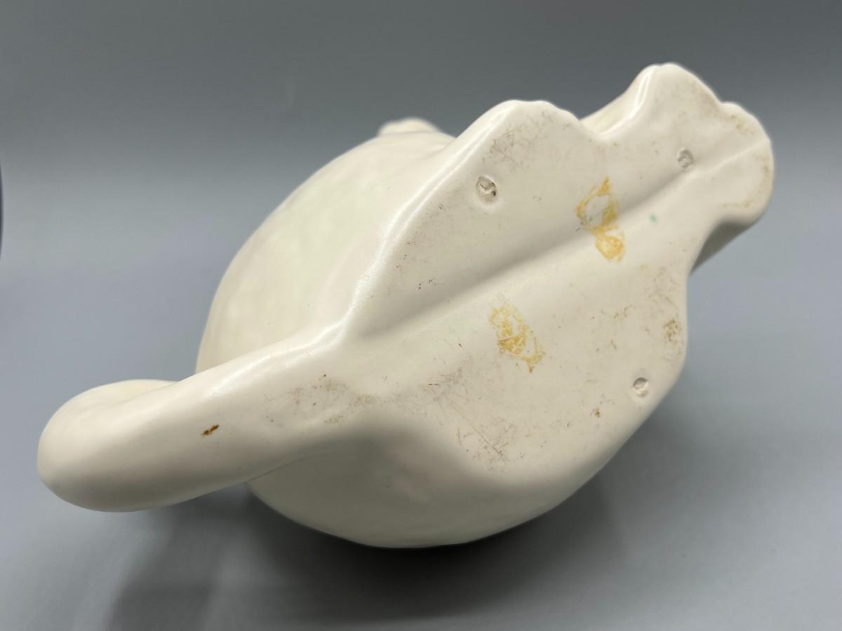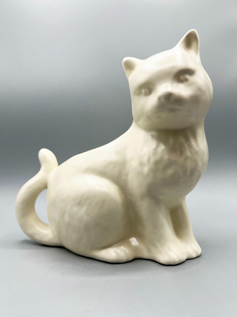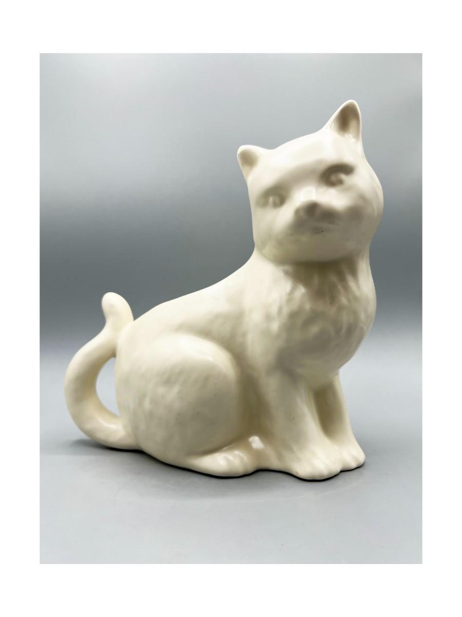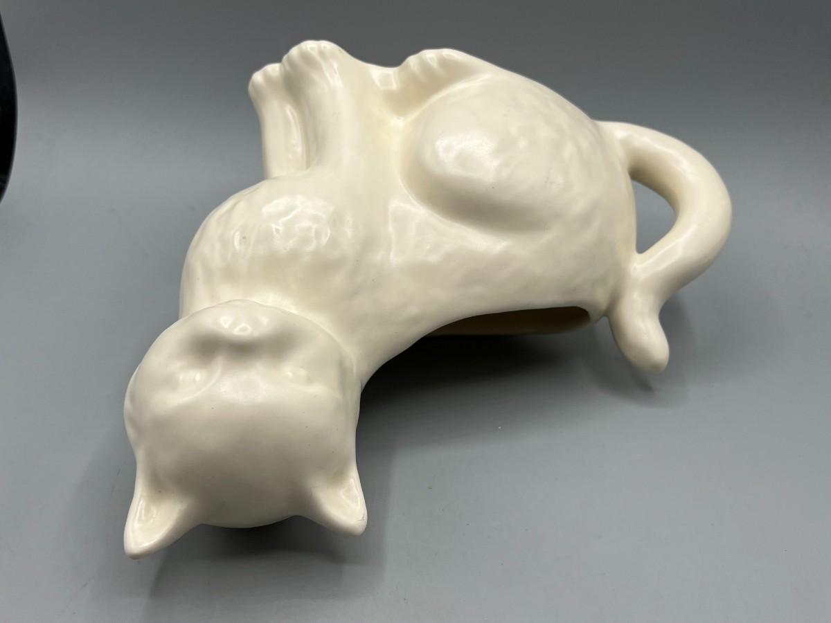 Vintage white cat figurine planter pot. Solid white finish. In good vintage condition. About 8" tall. Unbranded.