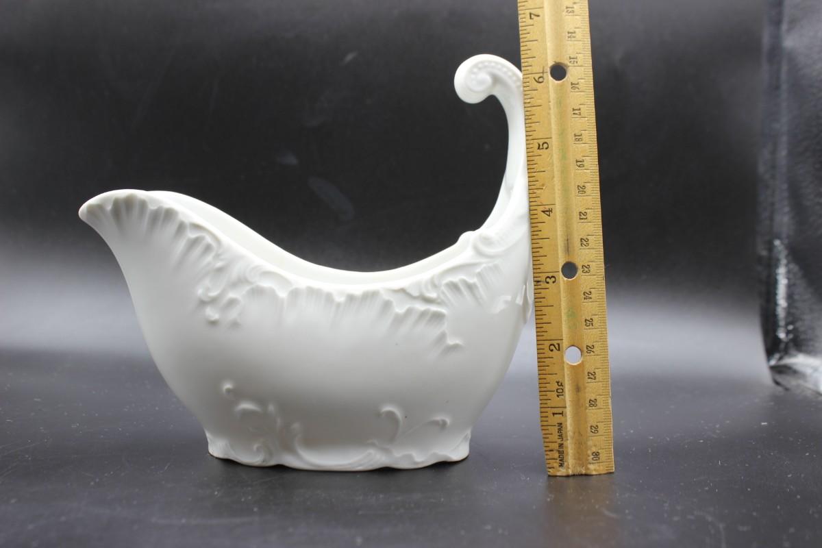 Vintage White Ceramic Decorative Gravy Sauce Boat
