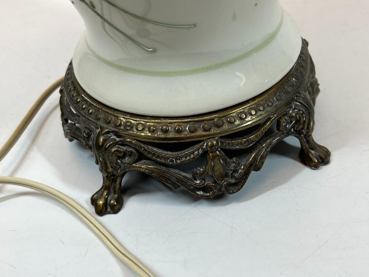 Vintage White Ceramic Table Lamp with Embossed Raised Yellow Flower and Butterfly Pattern