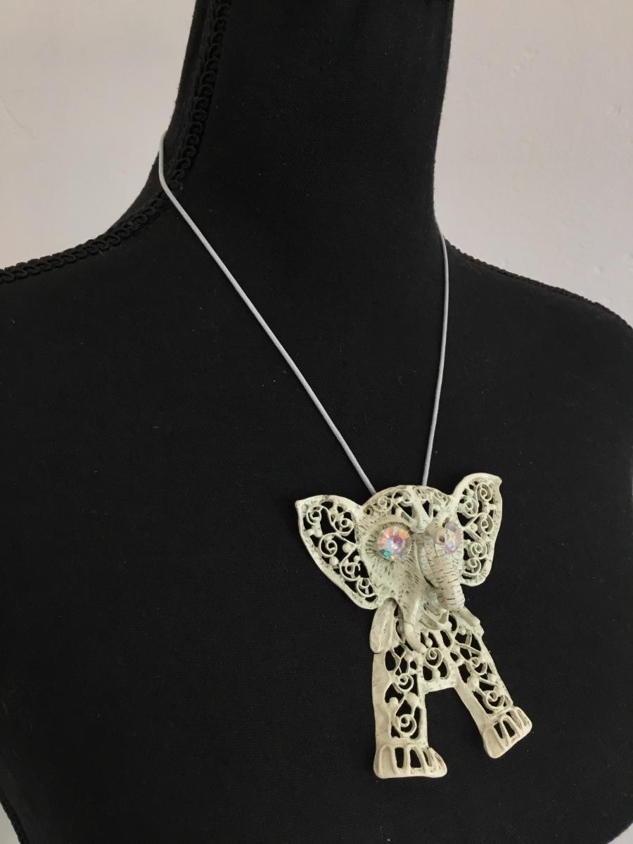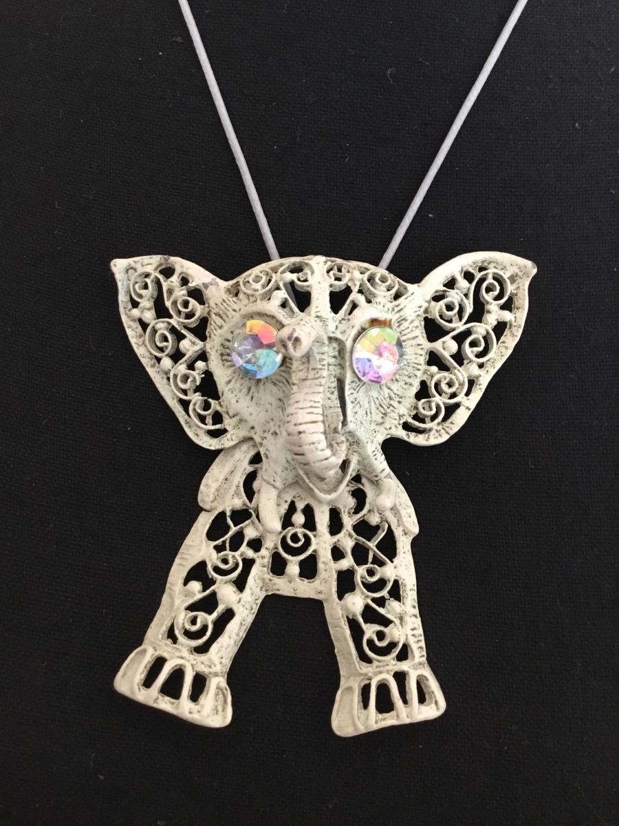 Vintage white ELEPHANT/ Articulated elephant necklace