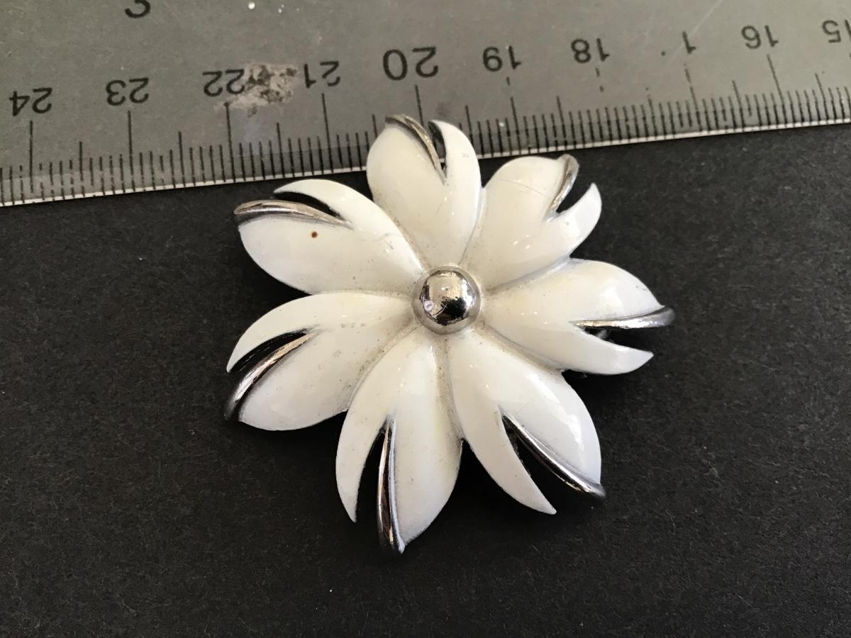 Vintage White Enamel Brooch