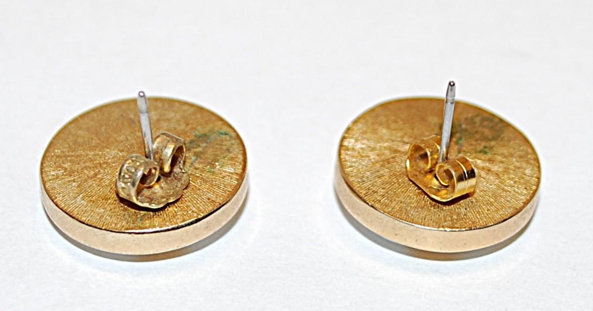 Vintage White Enamel Button-Style EARRINGS Set with Center Gold Colored Stripe and Stud Post Clasp