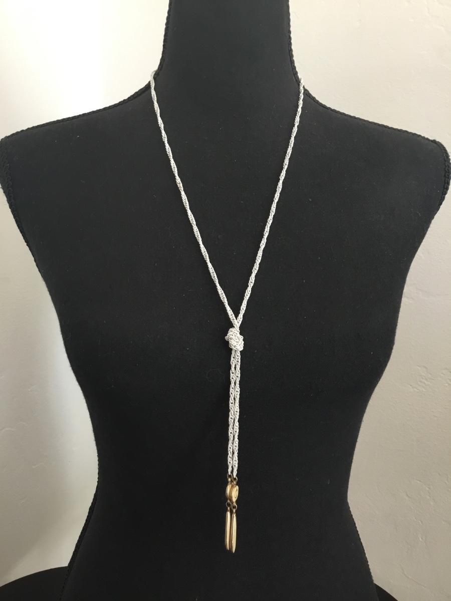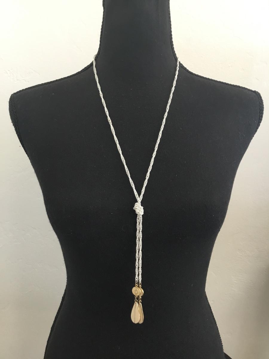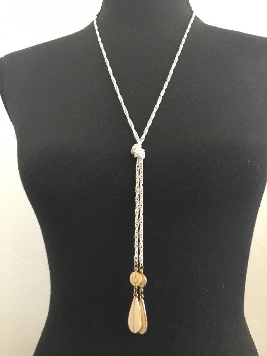 Vintage white enamel chain, gold, toned, enamel tassel necklace