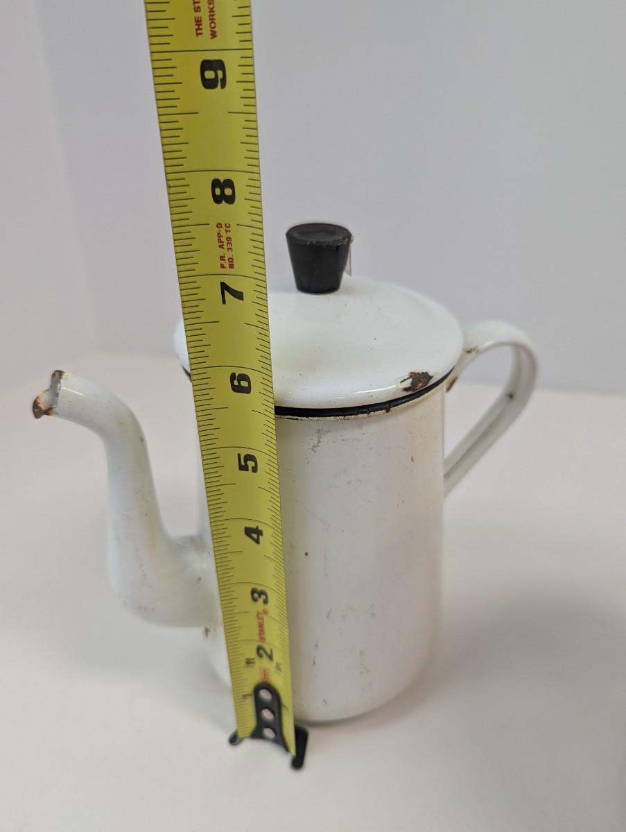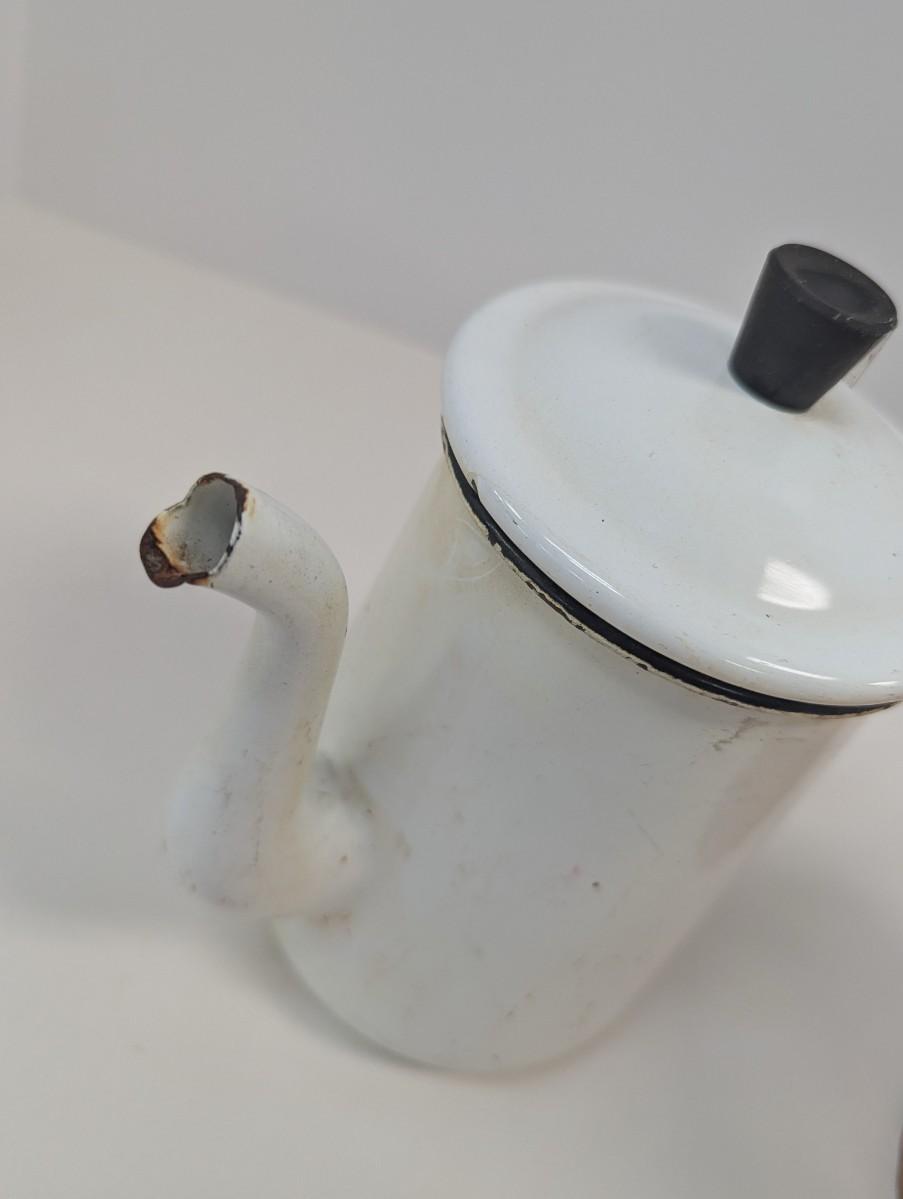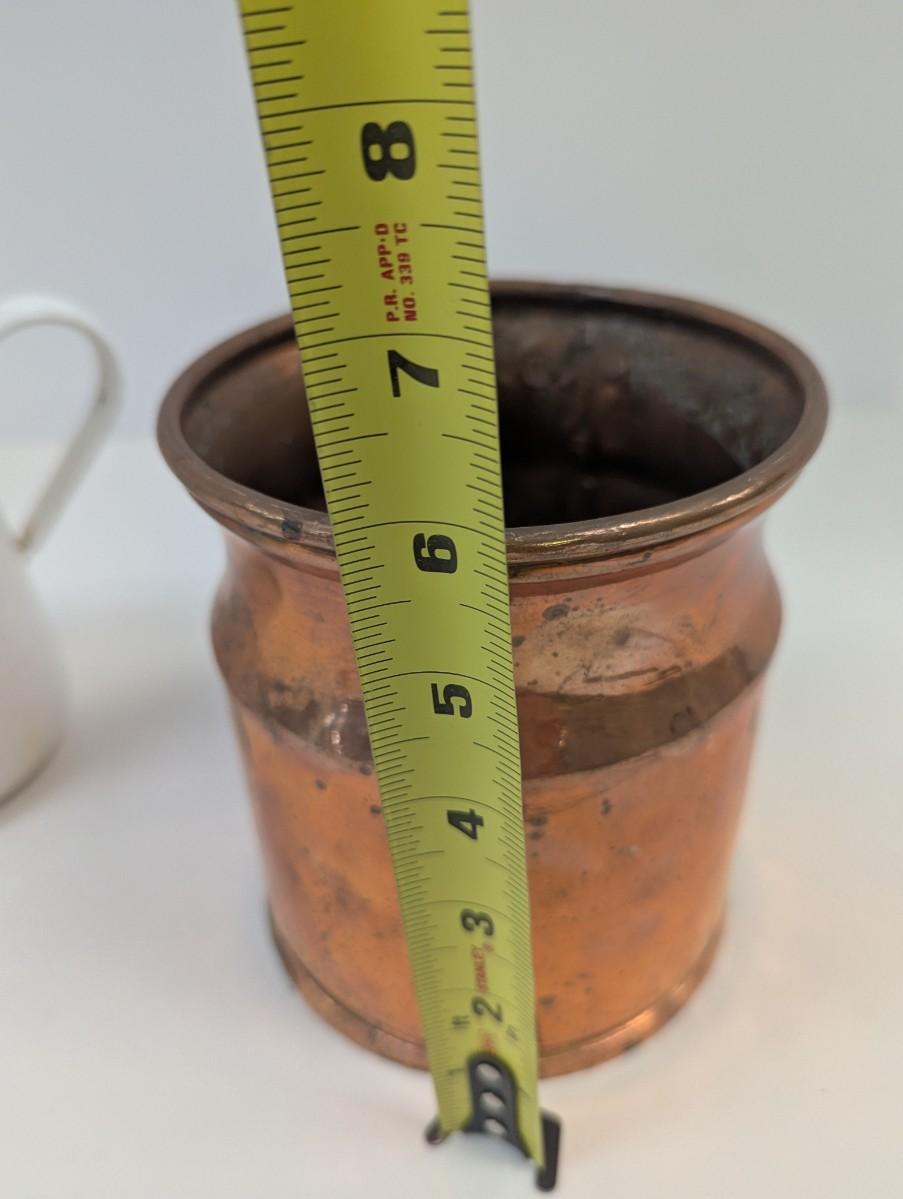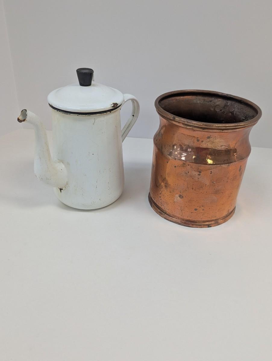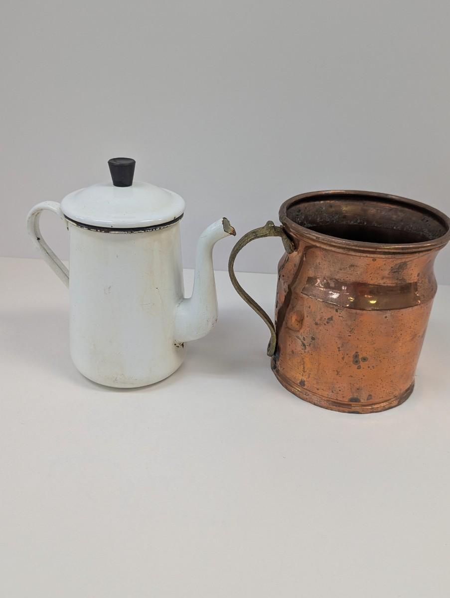 Vintage White Enamel Kettle Pot Enamelware Farmhouse Decor & Antique Copper Vessel With Handle