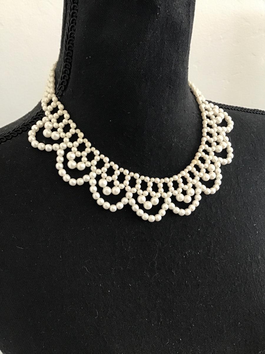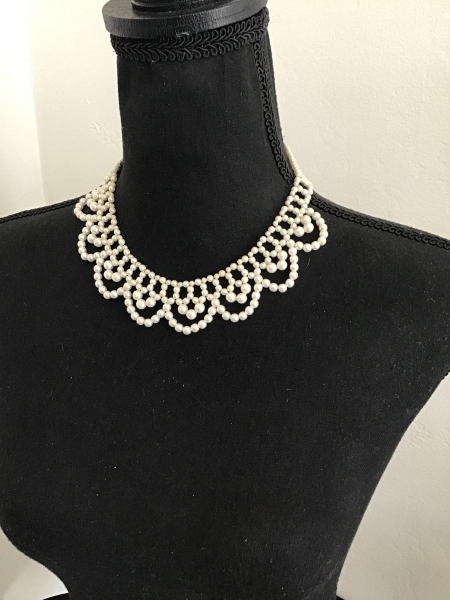 Vintage, white faux pearl collar necklace