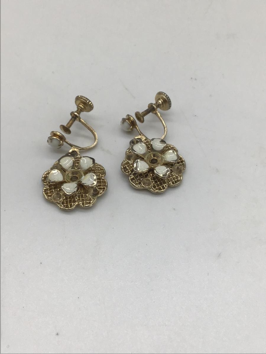 Vintage white flower clip on earrings