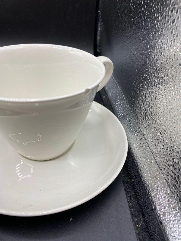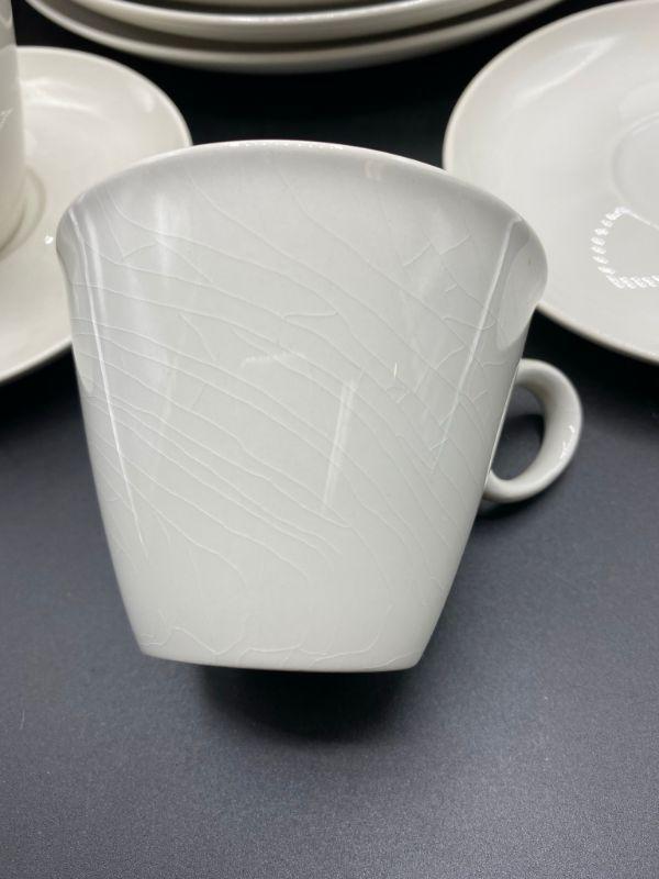 Vintage Franciscan Whitestone Ware. "Cloud Nine" pattern, solid white color. Not a complete set. Comes with 4 plates, cups & saucers, and bread plates. There is some crazing and one cup has damage.