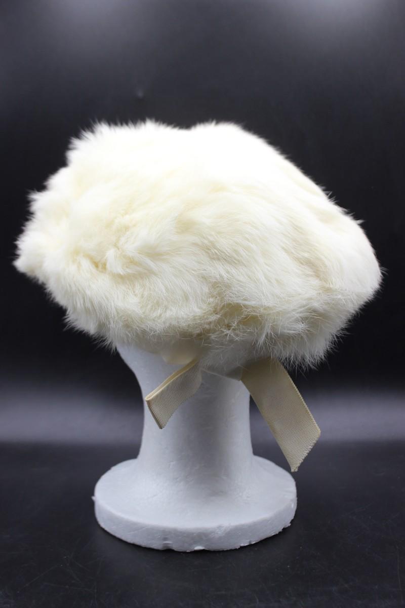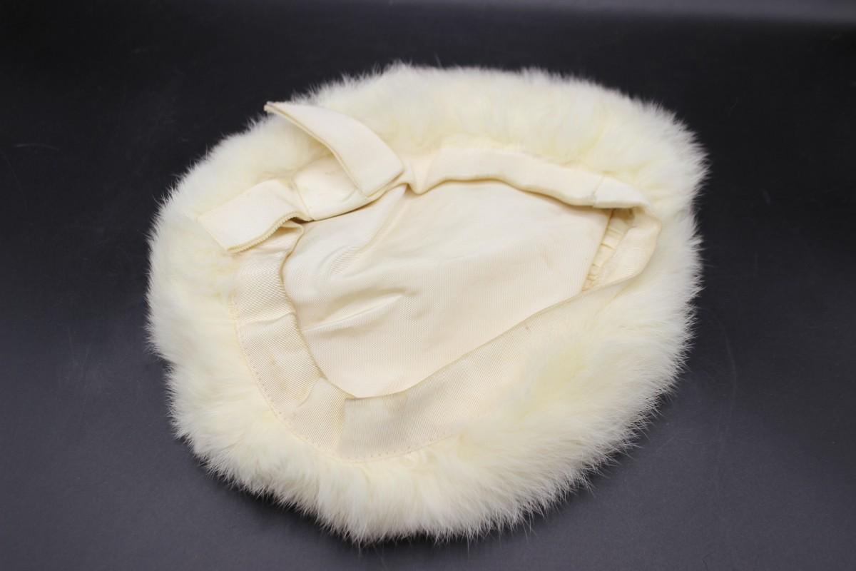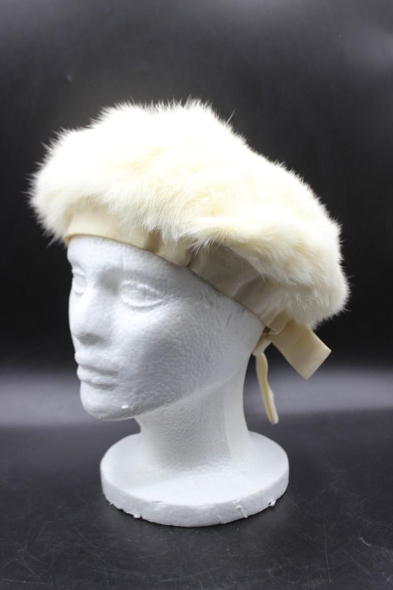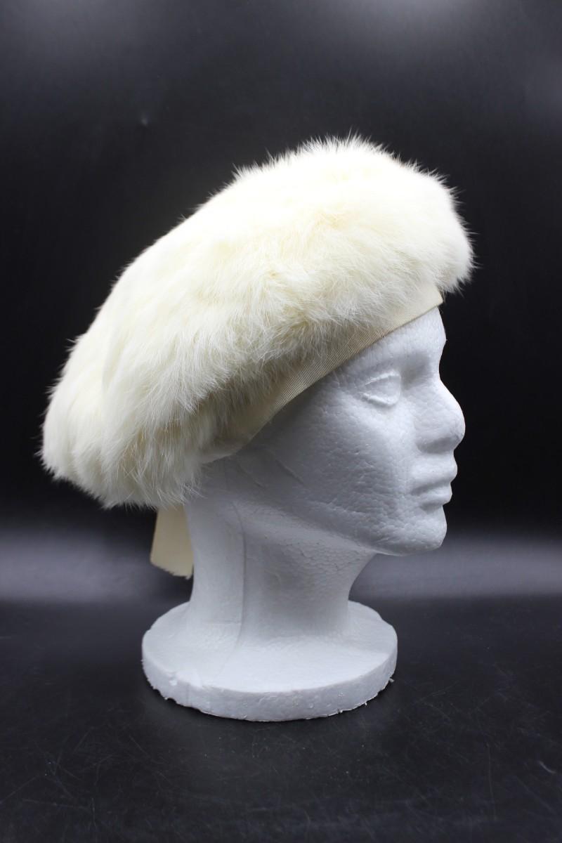 Vintage White Fur Beret Hat by Dayne