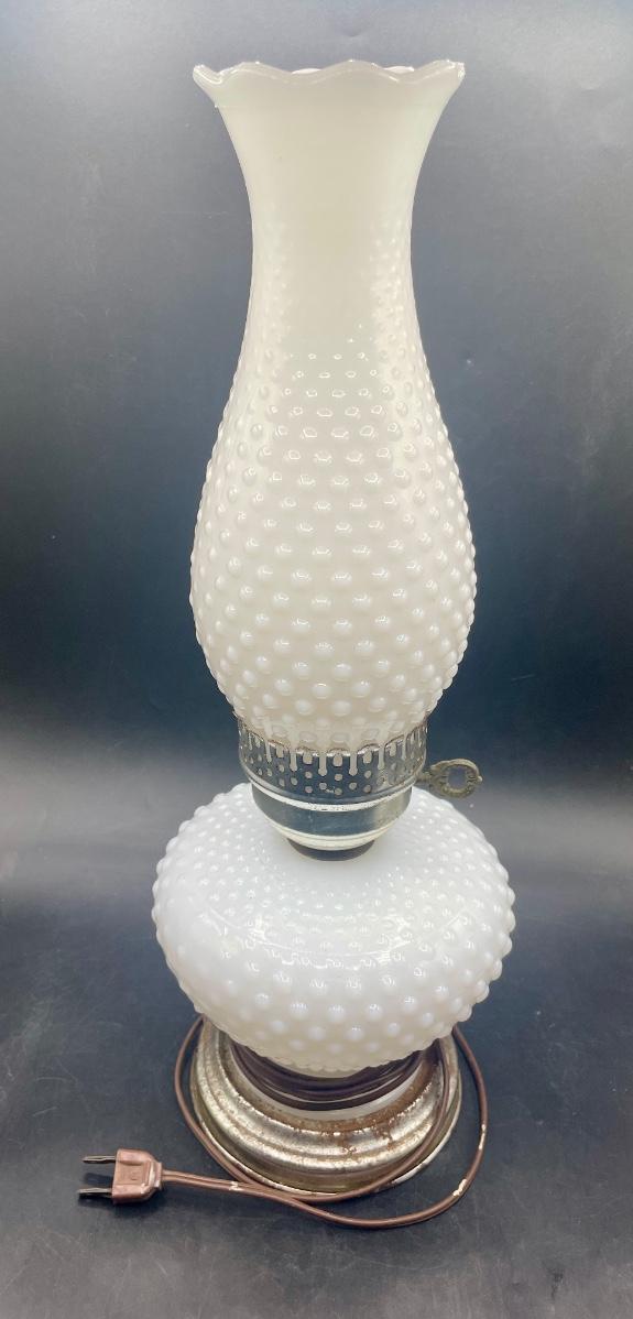 Vintage White Glass Hobnail Lamp