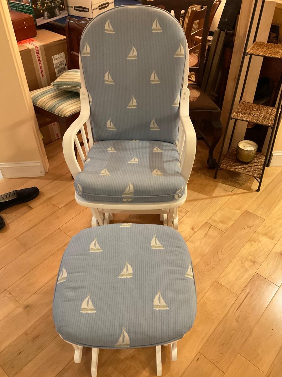 Vintage White Glider and Ottoman hand chosen Sail Boat Fabric