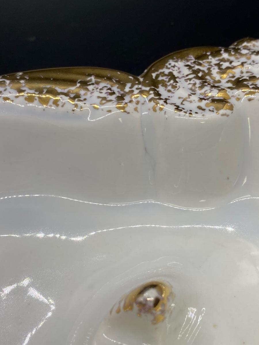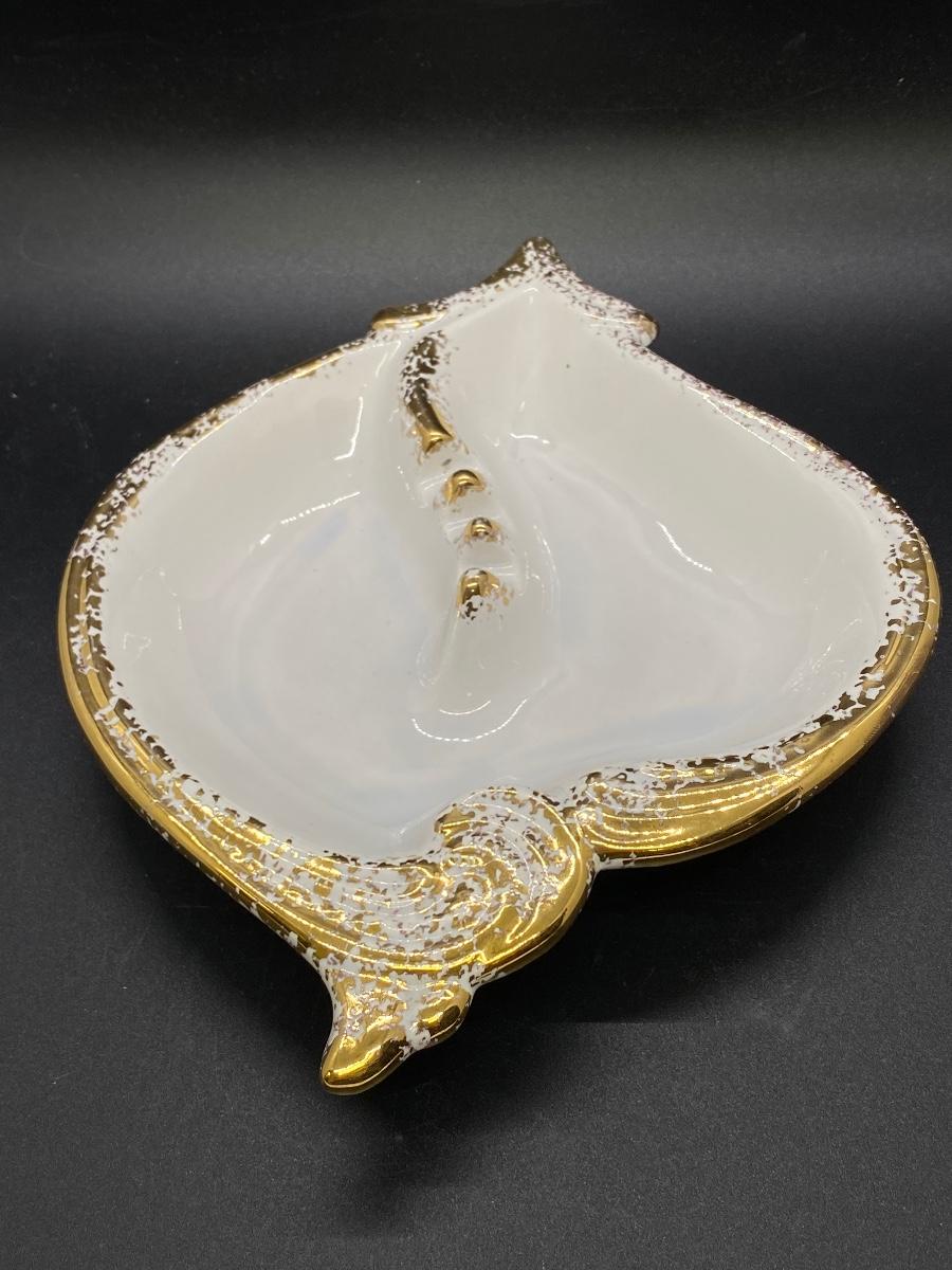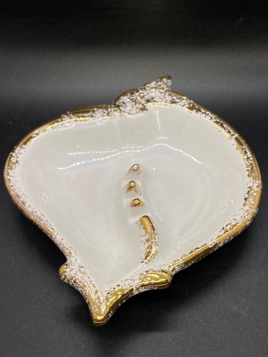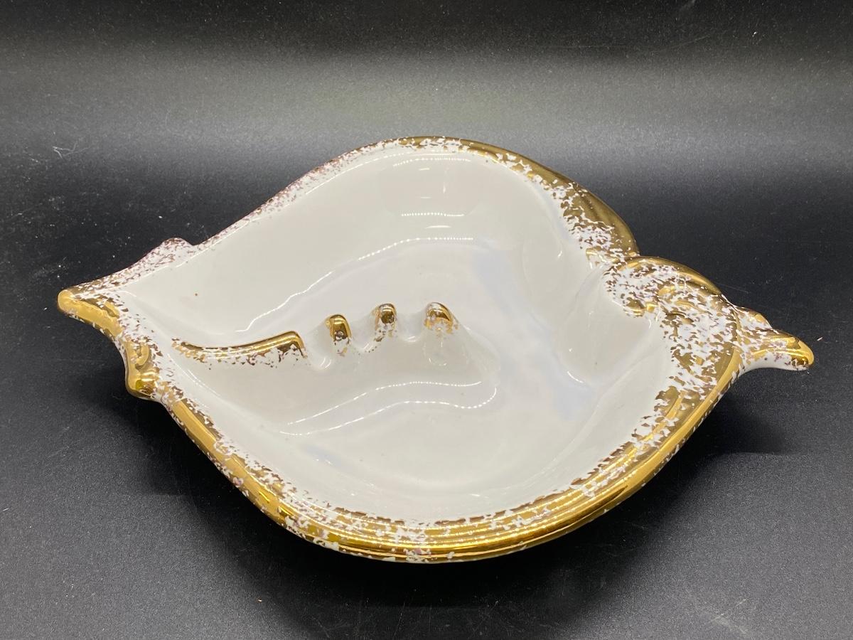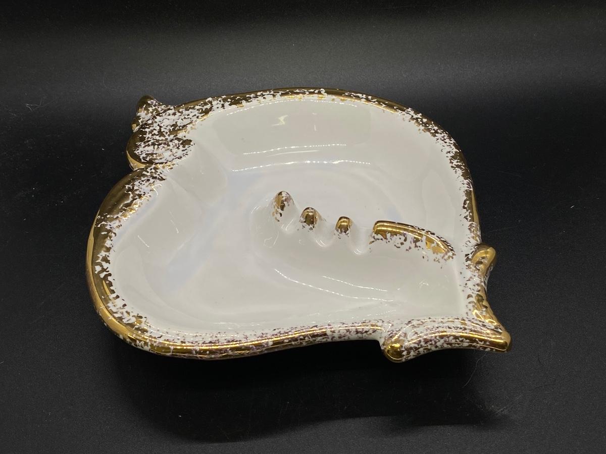 Vintage White & Gold Ceramic California Pottery Ashtray A93