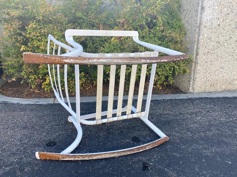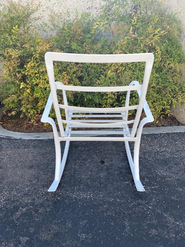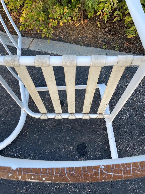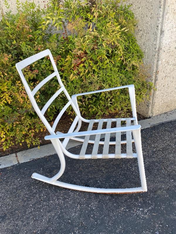 Vintage Metal Patio Rocking Chair. White painted metal with vinyl strap seat. In really good condition. Very little wear to the paint and the vinyl straps have not dried out.