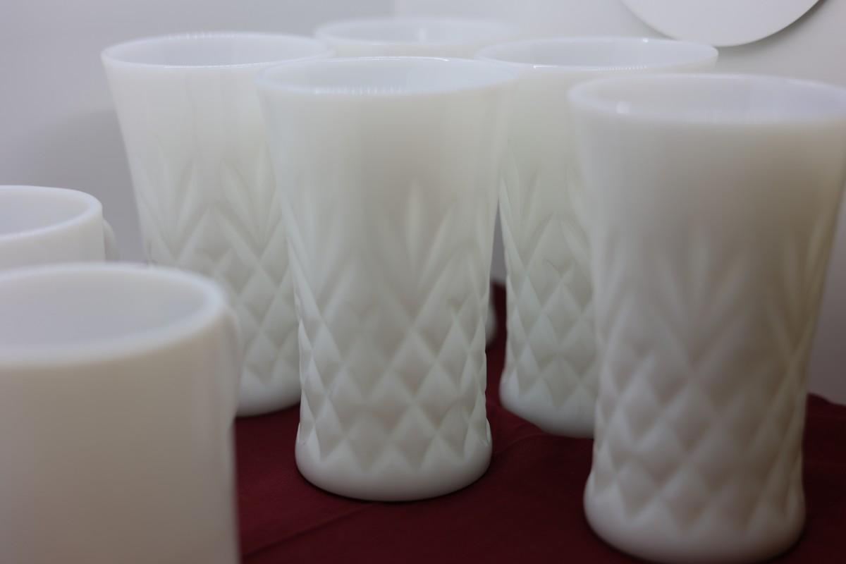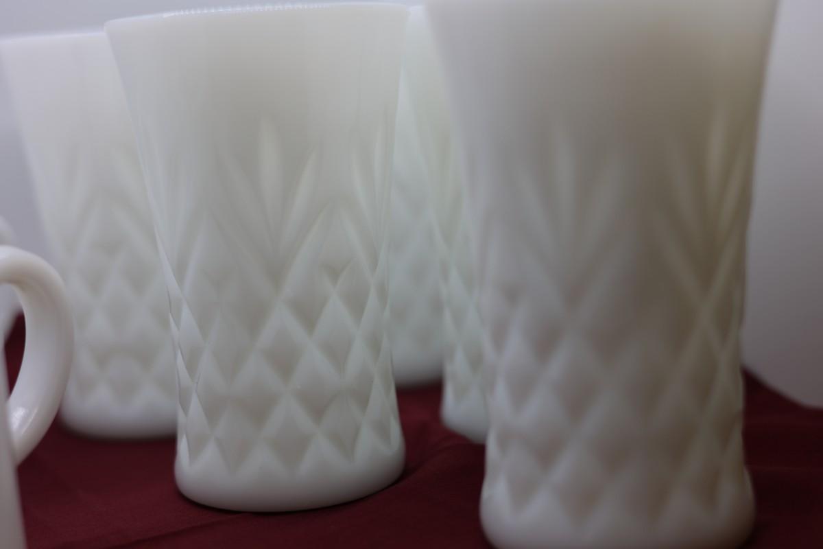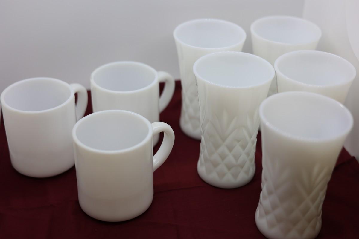 Vintage White Milk (3) Coffee/Tea & (5) Pineapple Design Glasses