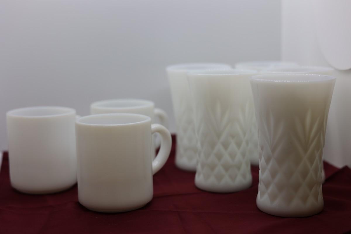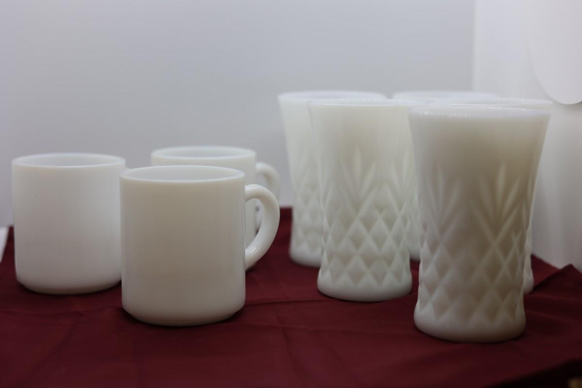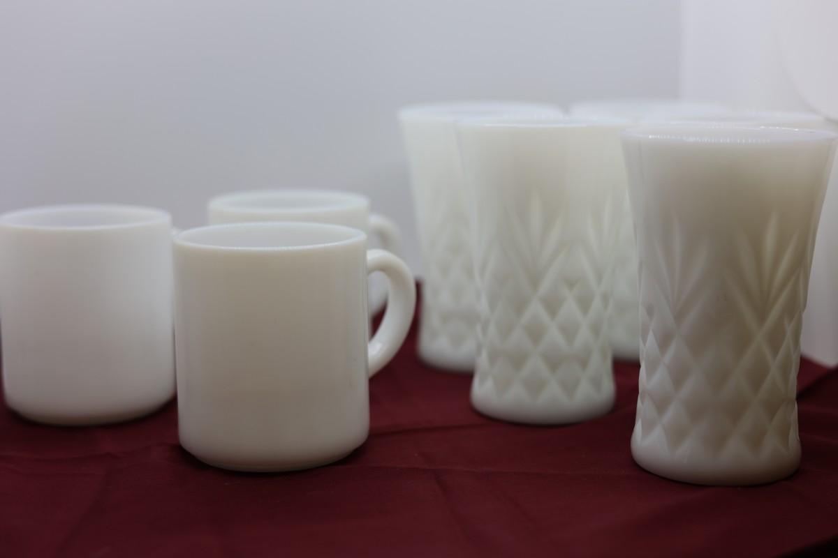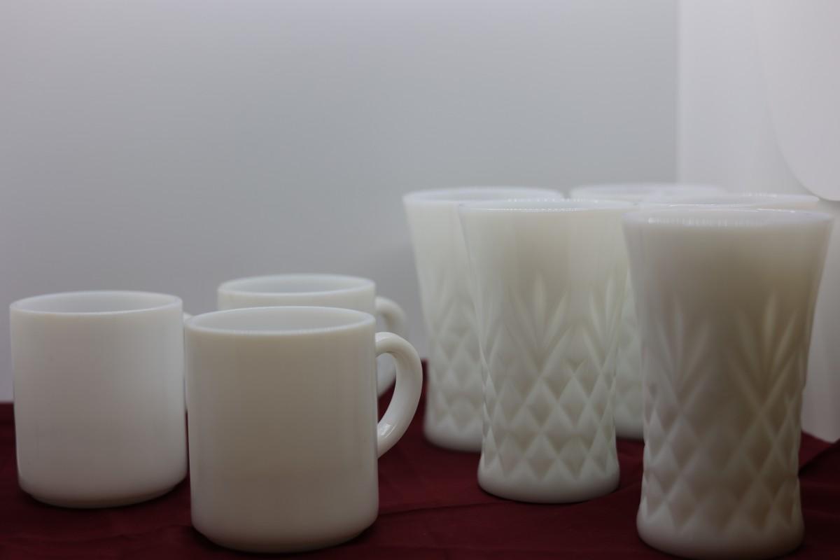 Vintage White Milk (3) Coffee/Tea & (5) Pineapple Design Glasses