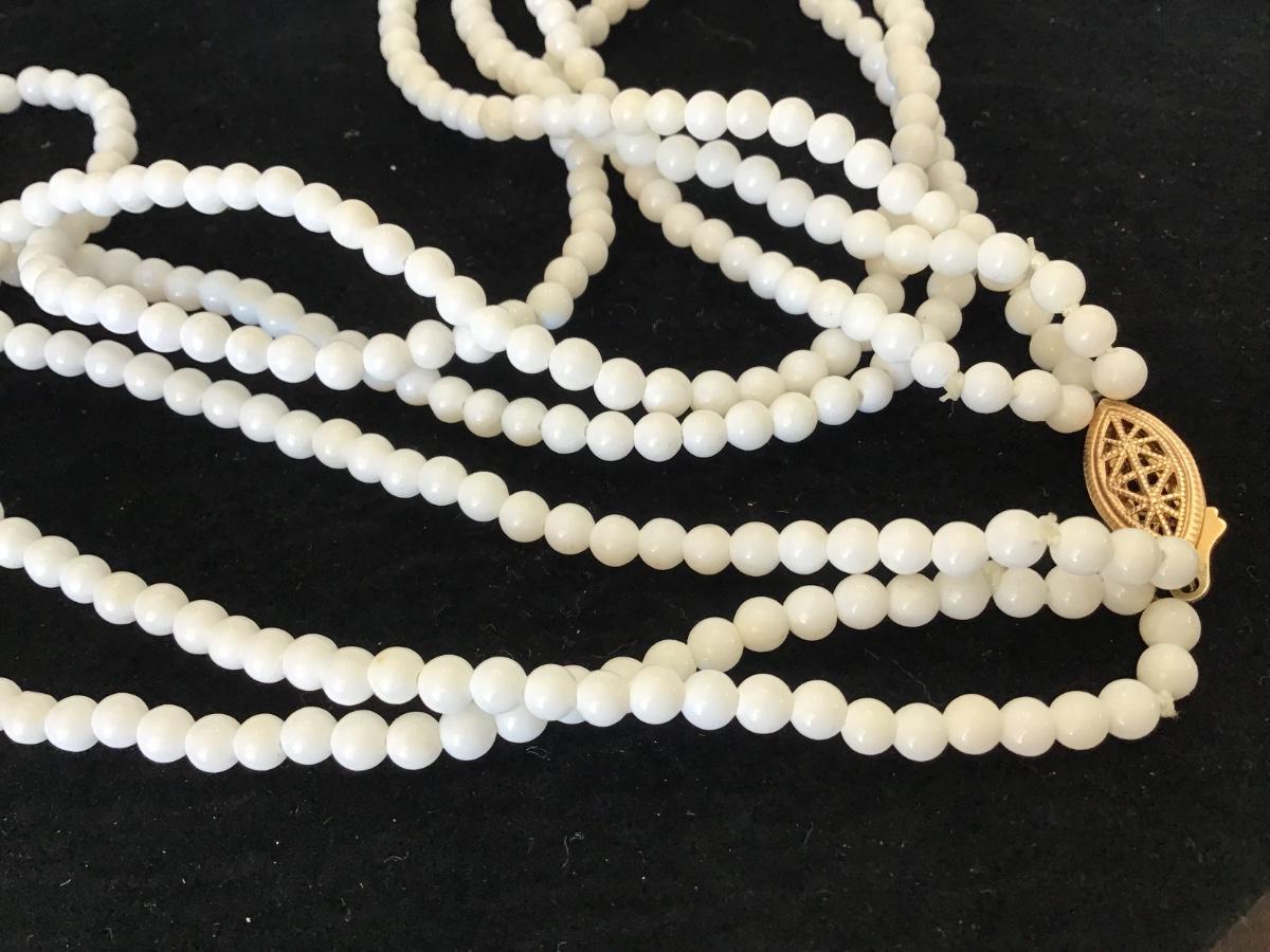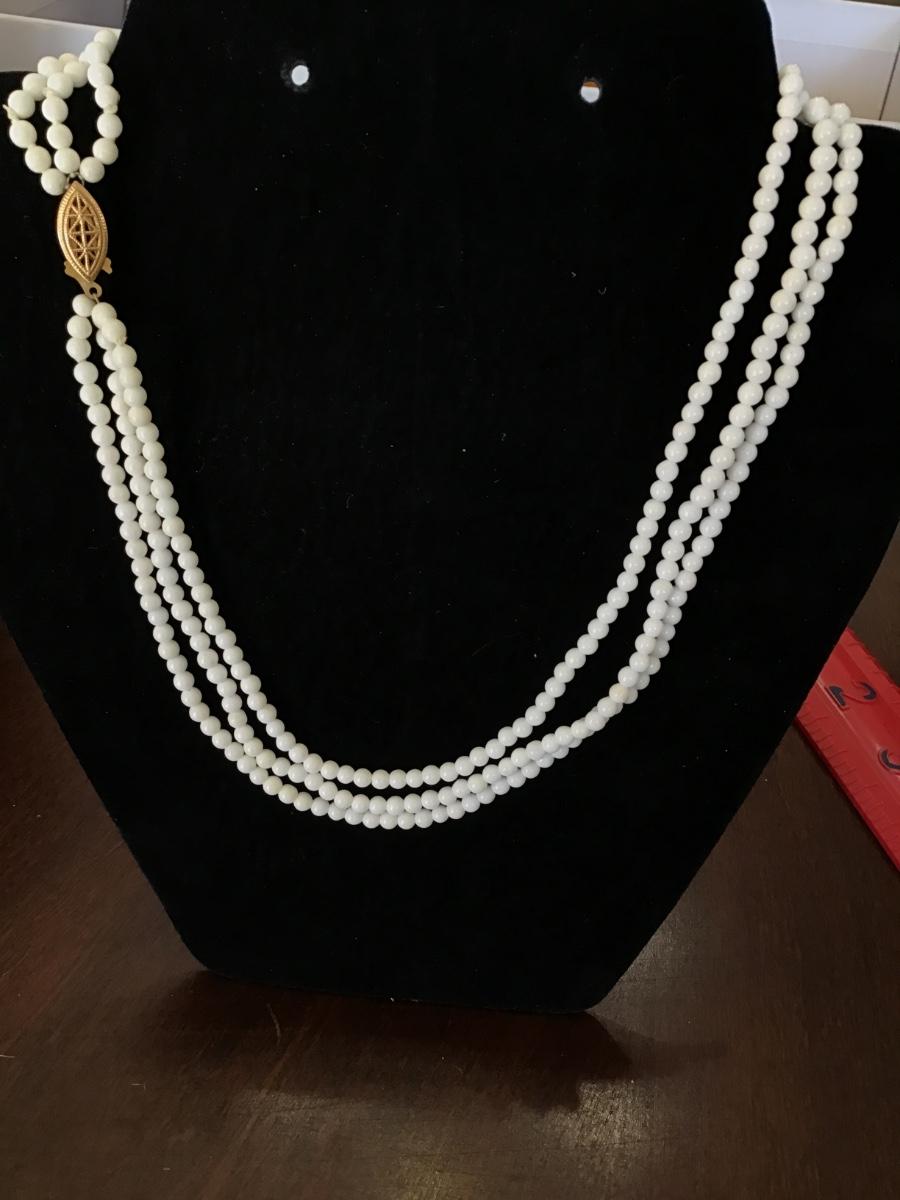 Vintage White Milk Glass 3 Strand Collar Necklace