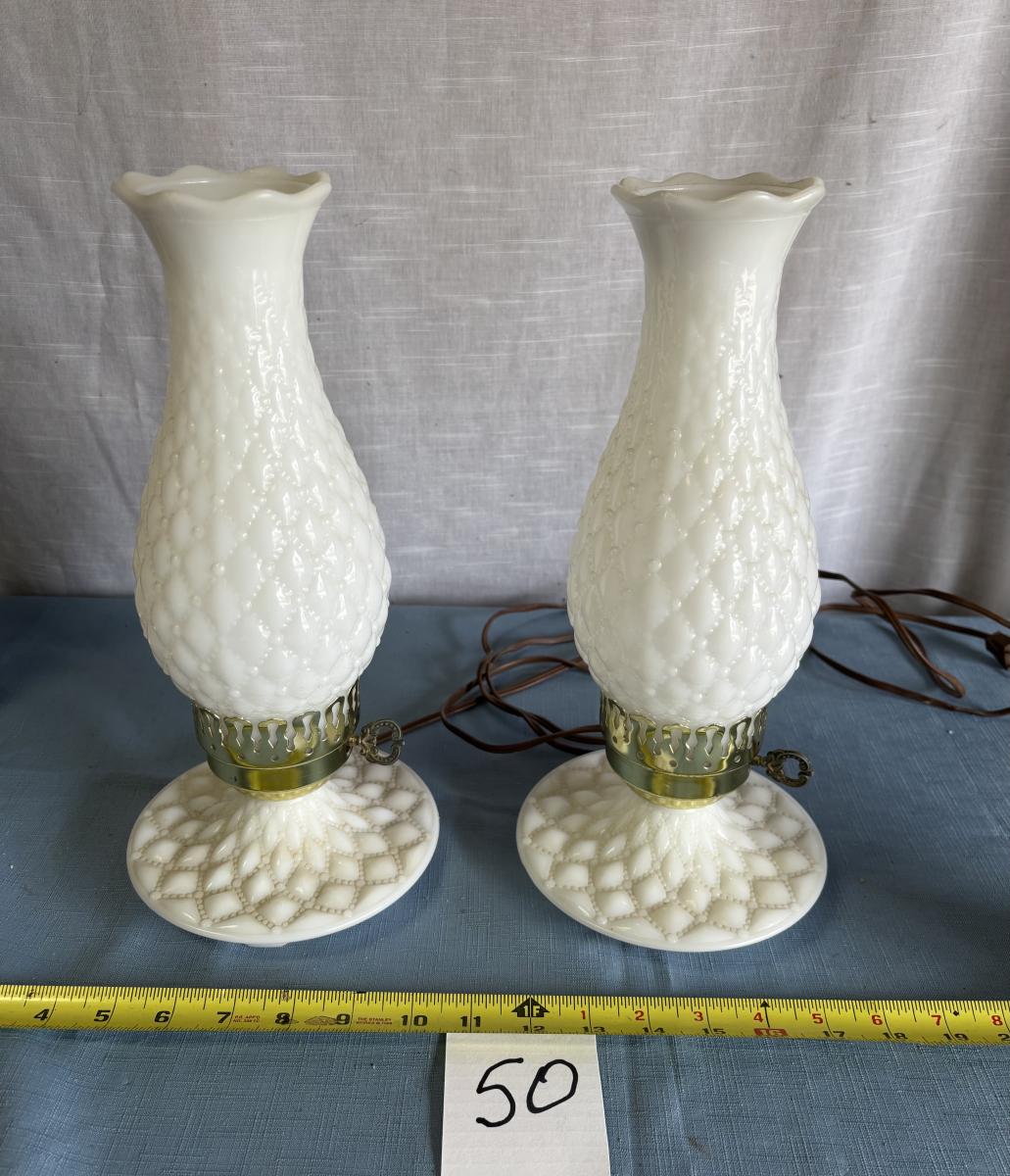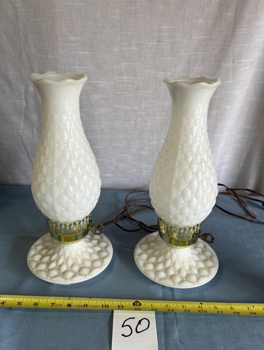Vintage White Milk Glass Hurricane Style Lamp Set