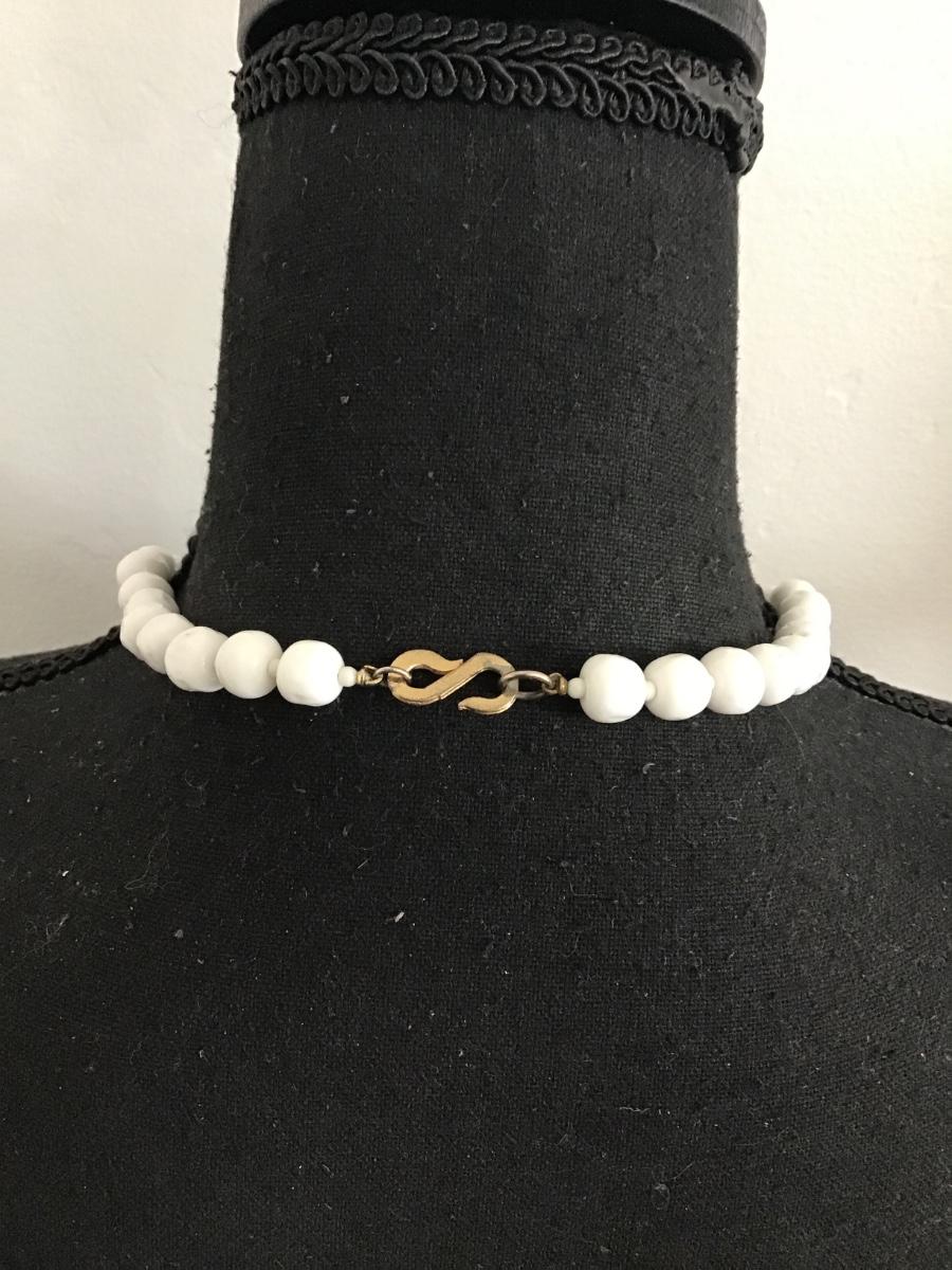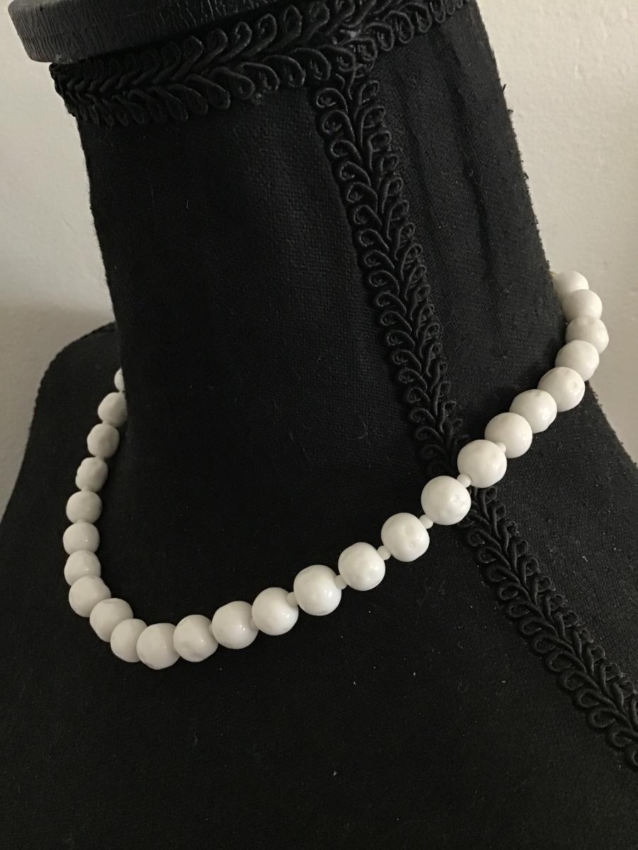 Vintage, white milk glass, nugget, pebble, beer double knotted collar necklace
