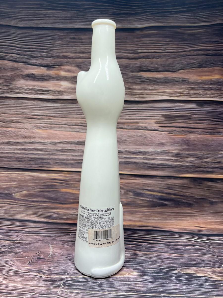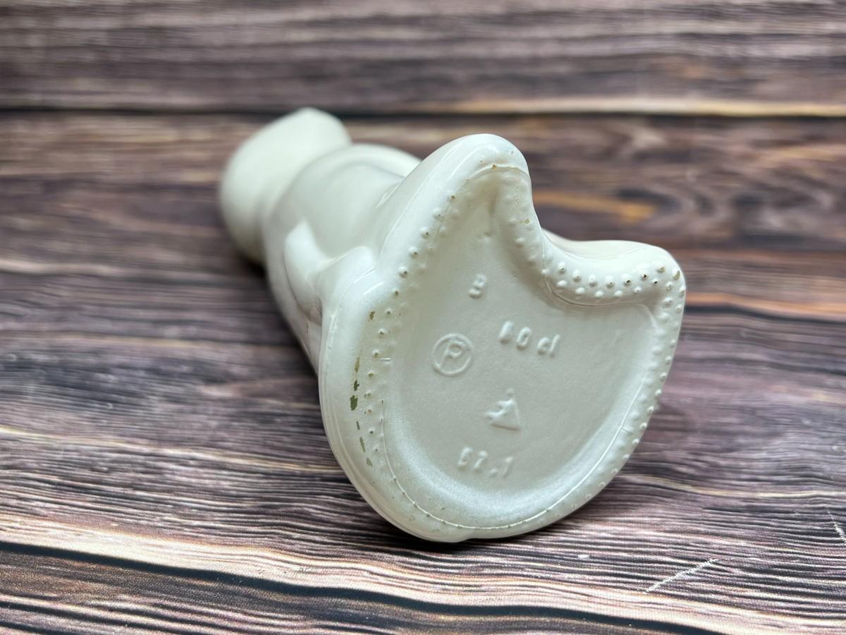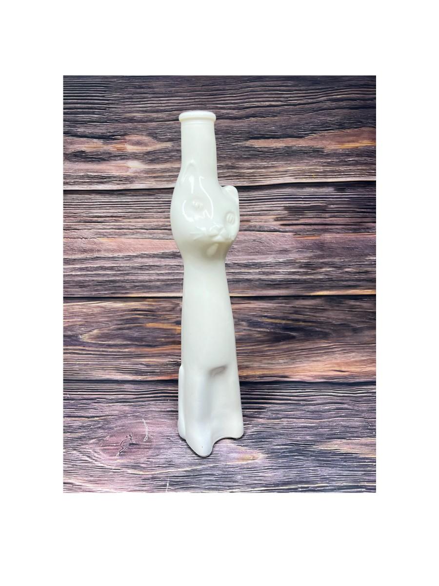 Cool vintage white glass cat shaped bottle. Was a Moselland Riesling Sherry bottle. Does not have a cap or cork. Displays great, good condition. About 12" size.