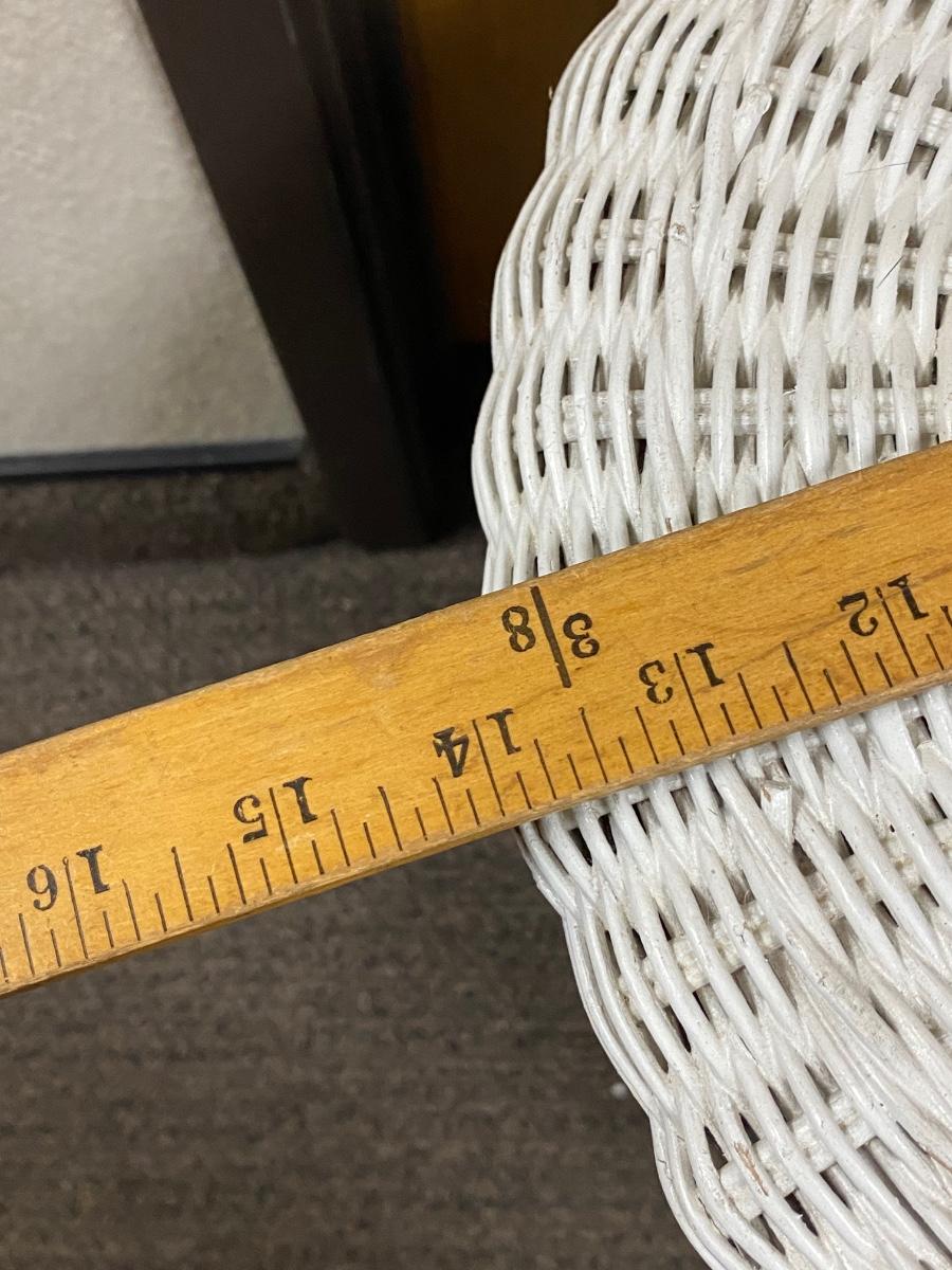 Vintage White Painted Round Wicker Woven Plant Stand Side Table Stool Seat. In good condition, sturdy. Light surface wear to paint, can easily be repainted as desired. About 18" tall and 14" diameter.