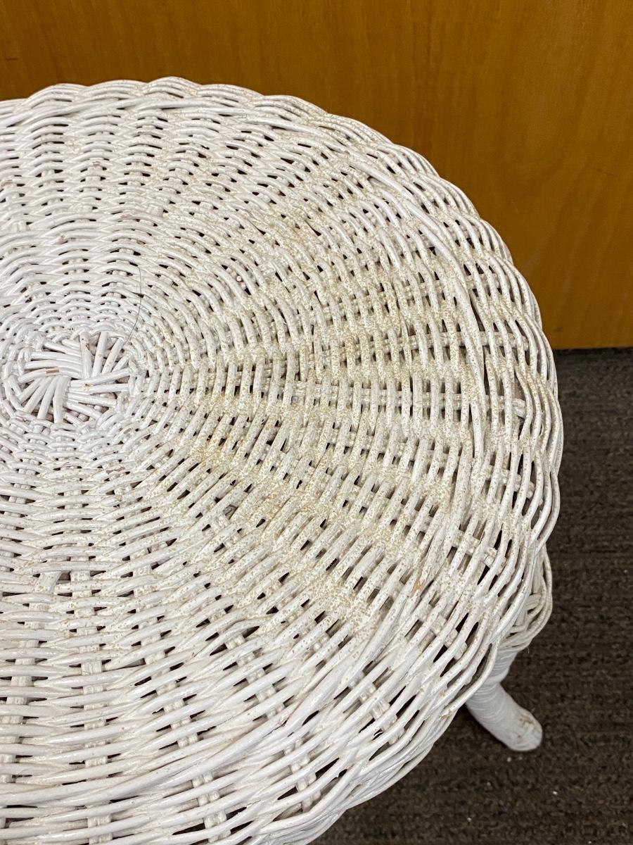 Vintage White Painted Round Wicker Woven Plant Stand Side Table Stool Seat