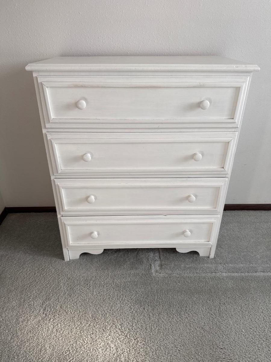 Includes 4 drawers. dimensions are 34 1/2 inches tall by 30 1/2 inches wide by 15 1/2 inches deep.