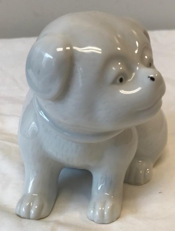 Description: White Philippines MMA Pug Dog Figurine. Measurements approximate: 4 H . Material: Porcelain. Shipping Charges: $15. Condition: Very good.