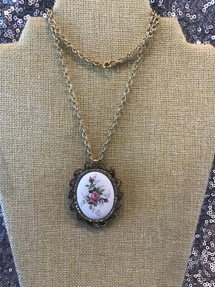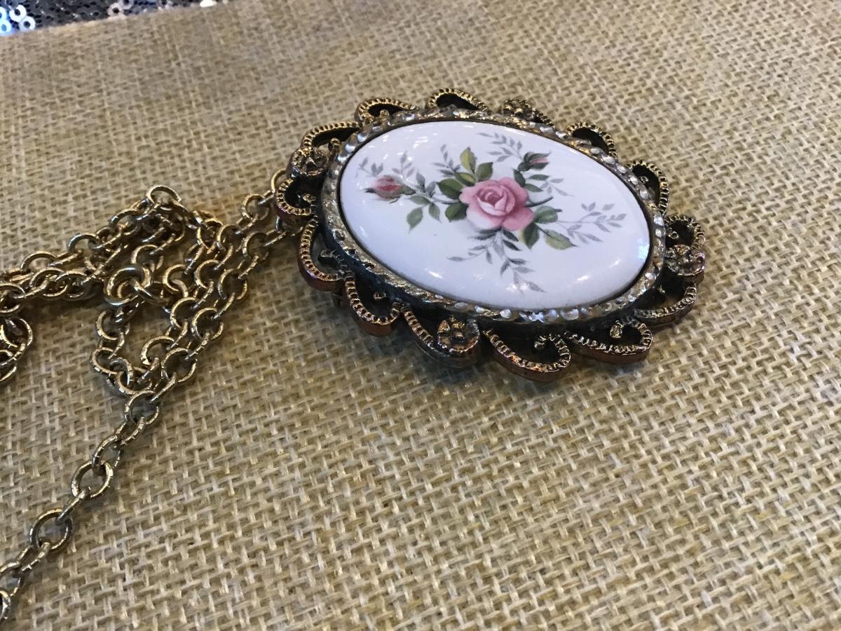 Vintage White Porcelain Rose Brooch/Pendant Flowers Floral Roses