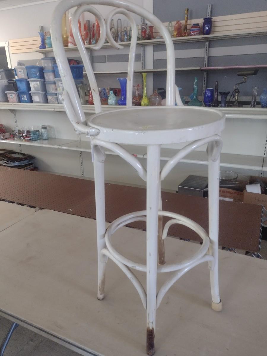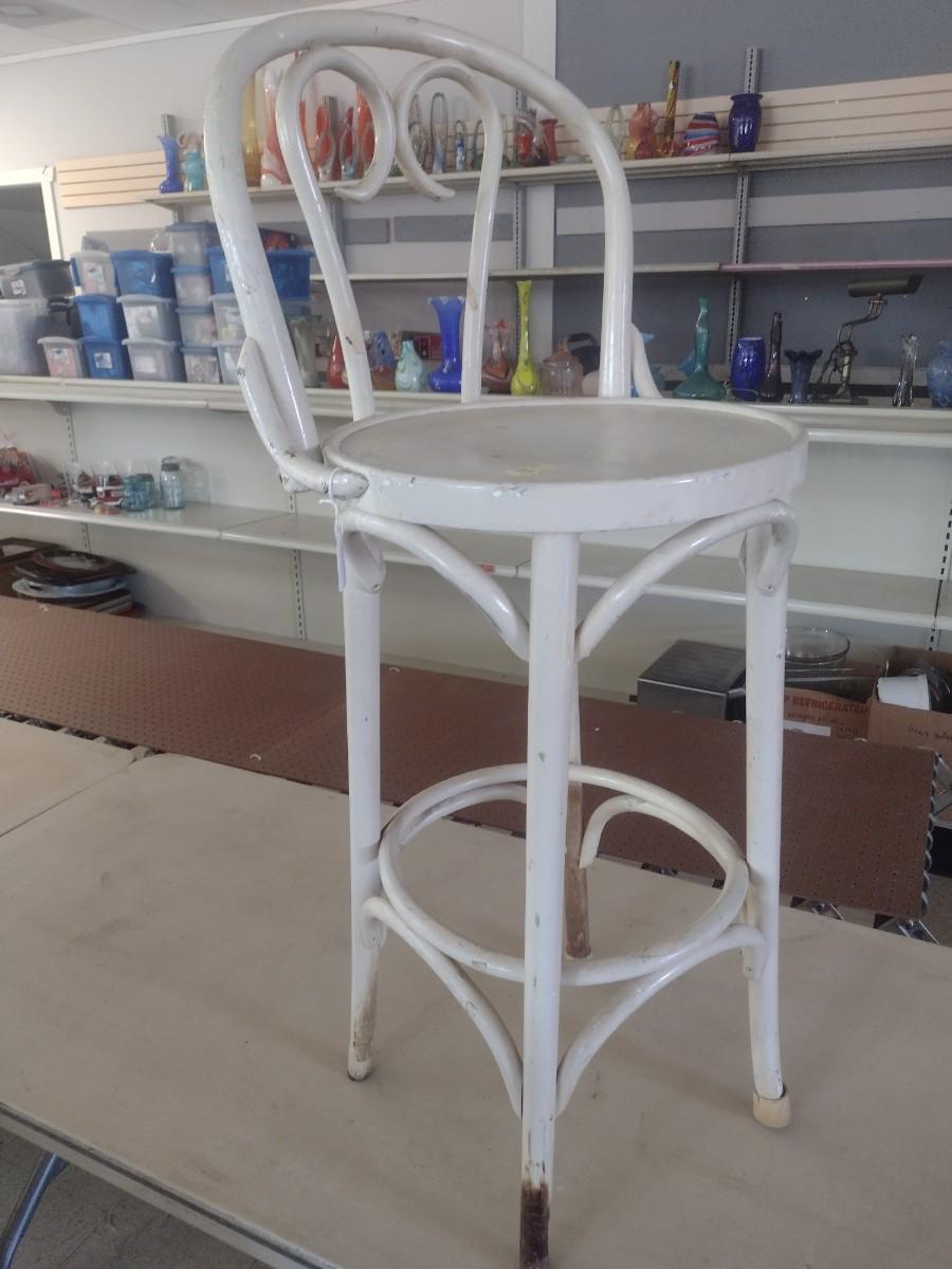 Vintage White Rattan Bar Stool