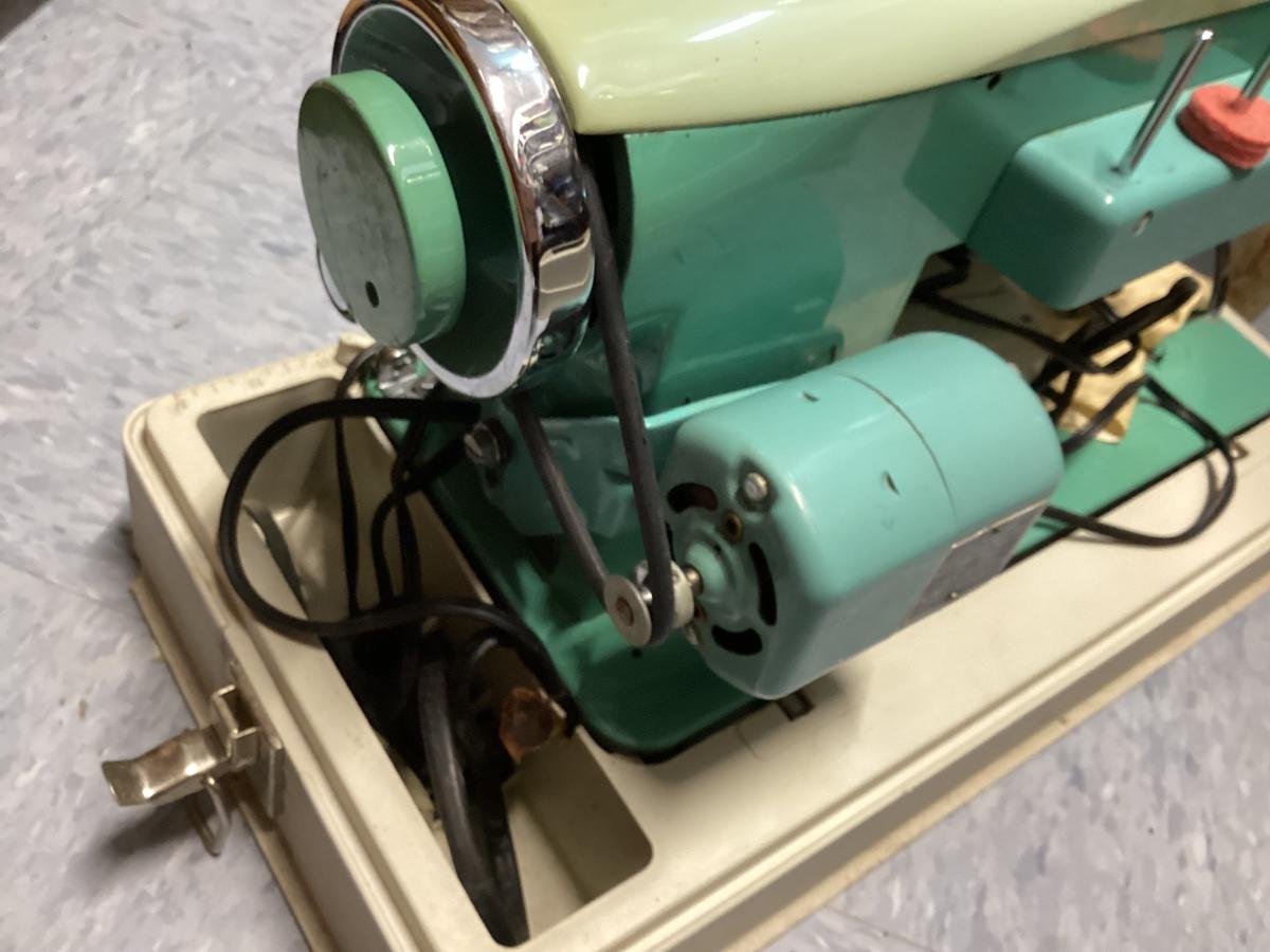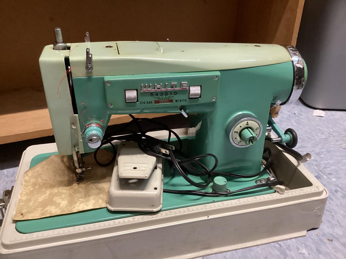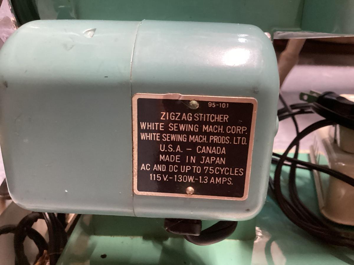 vintage White sewing machine - green, untested