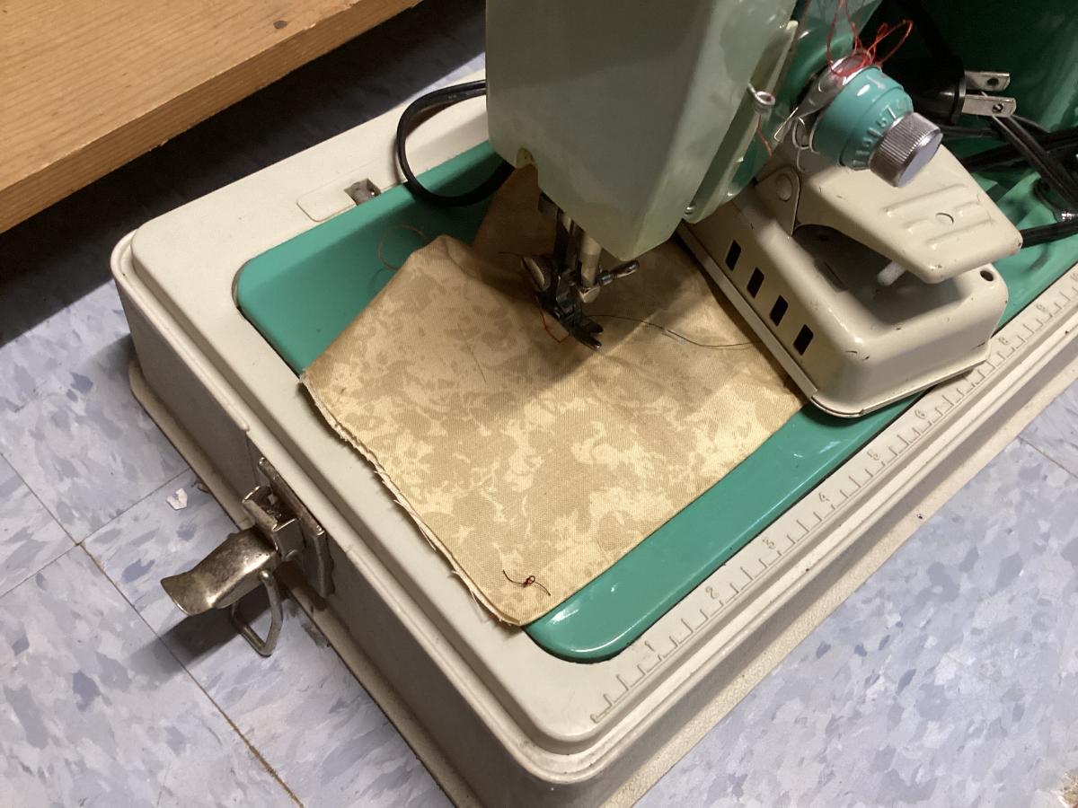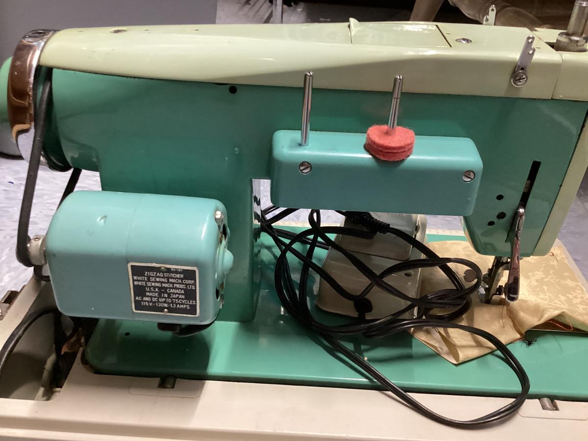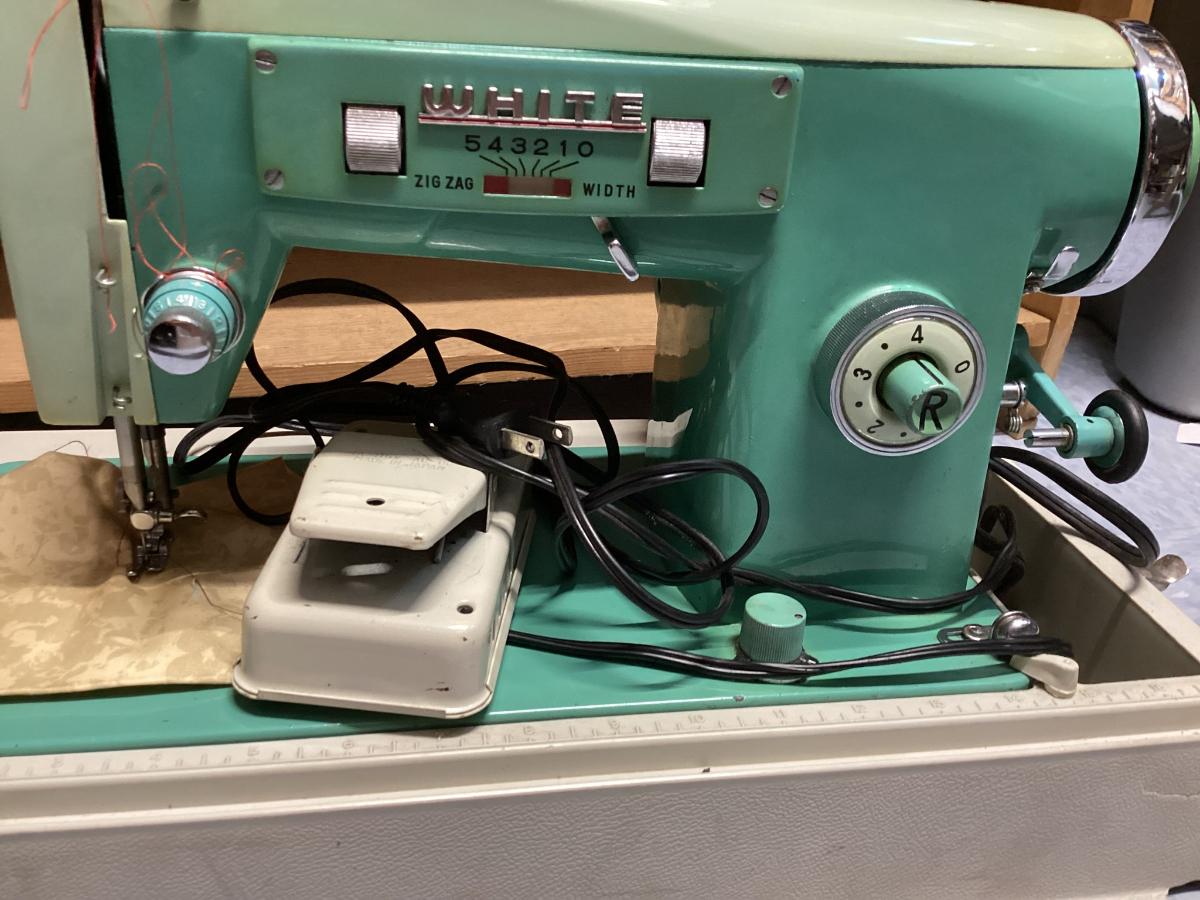 vintage White sewing machine - green, untested