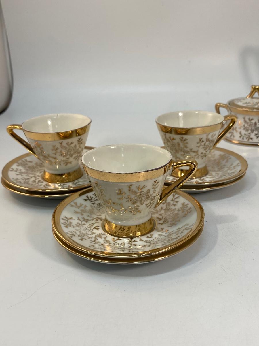 Vintage White w Gold Floral Vine Demitasse Mini Tea Set Unbranded
