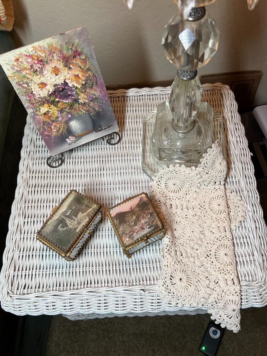 Vintage White Wicker Rattan End Side Table - LOCAL PICK UP IN BREA - READ DESCRIPTION