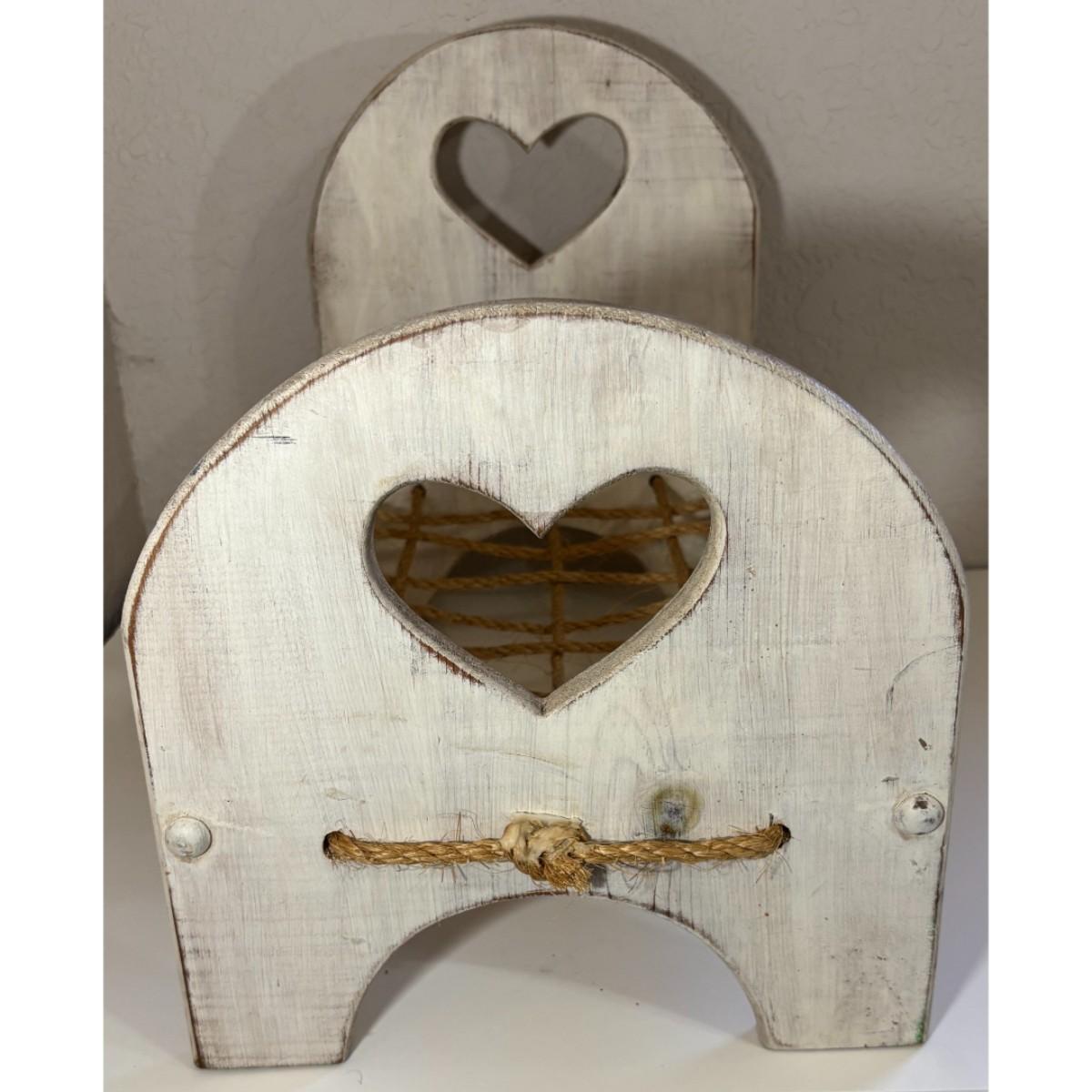 Vintage White Wooden 18.5" Long by 10.75" Wide Doll Rope Bed Hearts Furniture