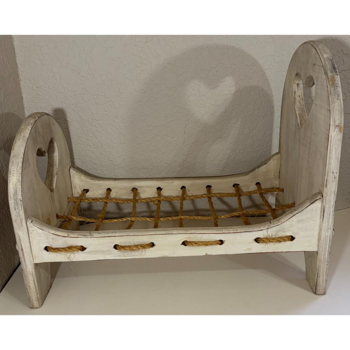 You get one doll rope bed that is in good condition with minor surface wear beyond the intended distressed appearance. It measures approximately 18.5" long by 10.75" wide and the headboard stands roughly 15" tall. Please see all pictures. Thank you for looking. As a reminder, if this is a lot, we do not break up lots. Also, all items are prepacked, so each item is sent individually. Any item that qualifies for media mail and weighs over one pound will be shipped via media mail. Otherwise, the item will be shipped USPS ground advantage, or UPS ground. Shipping for this item is $30.00. Items ship within two days after payment is received. Item SKU is .