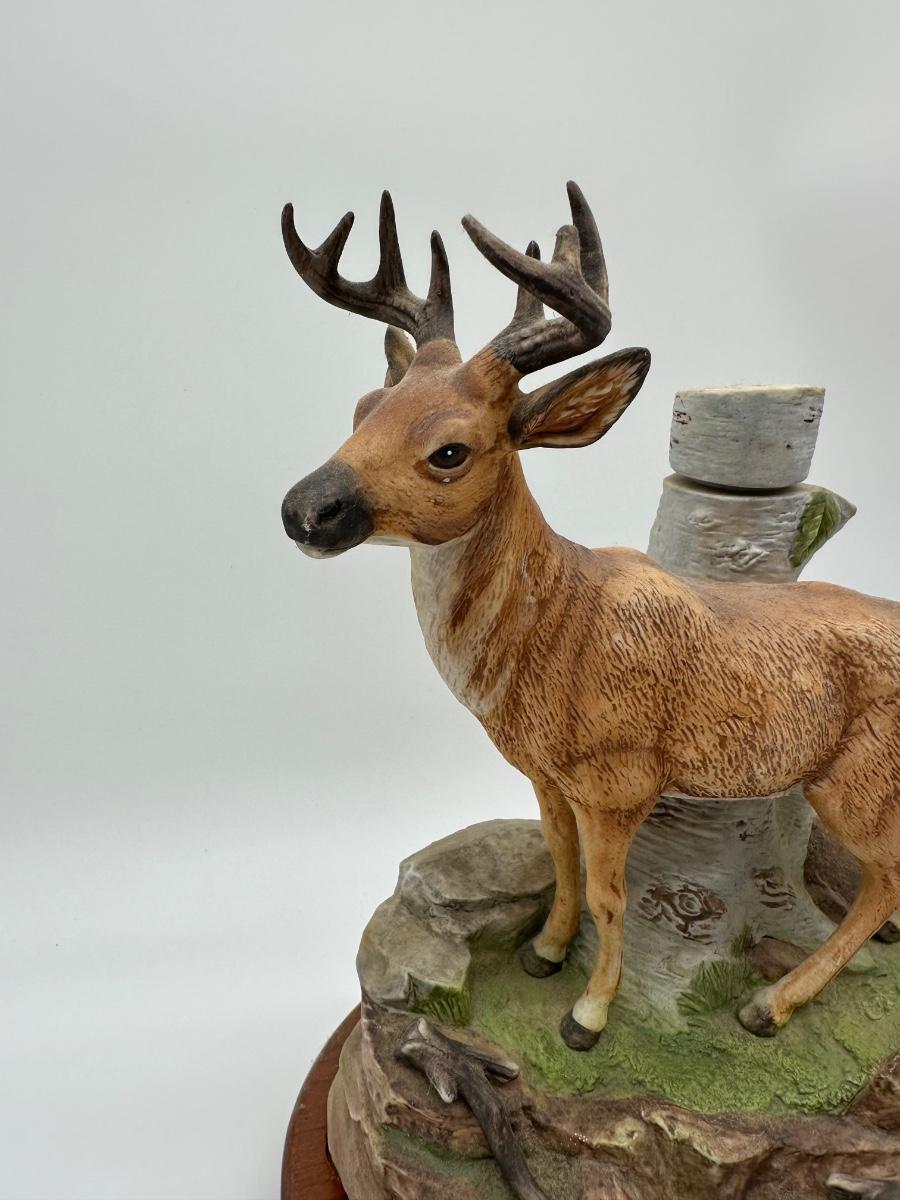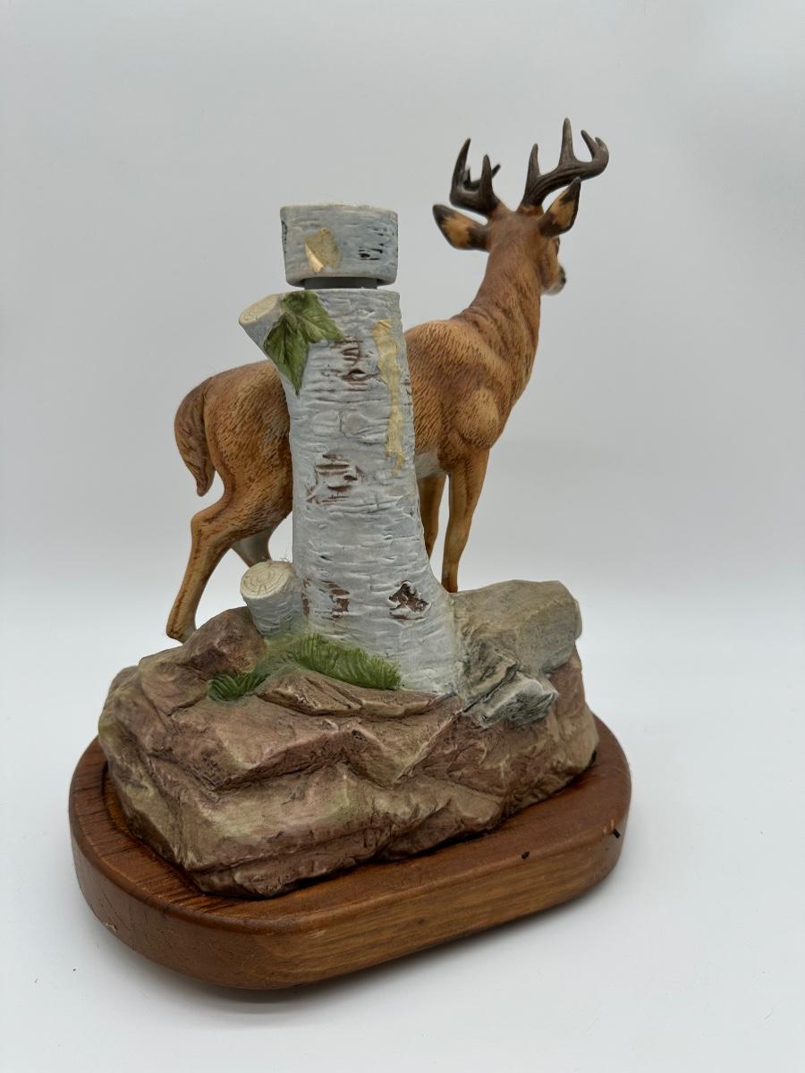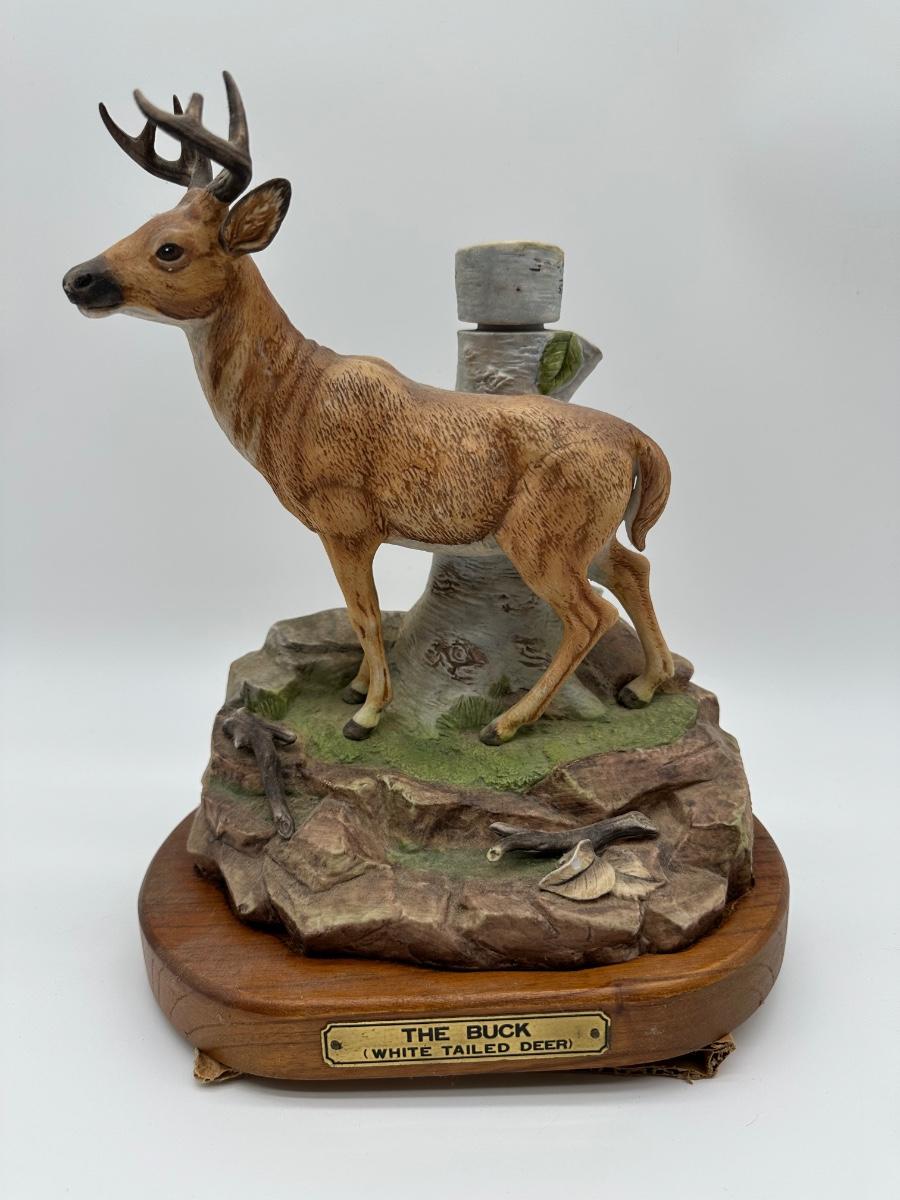Vintage Whitetail Buck Whiskey Decanter – “The Buck” Deer Decanter on Wood Base (Empty)